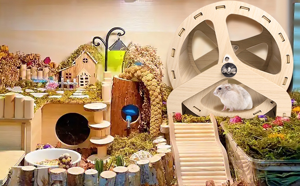 Деревянное колесо хомяка для упражнений для животных с подшипником для мыши, подобной 21 см.
