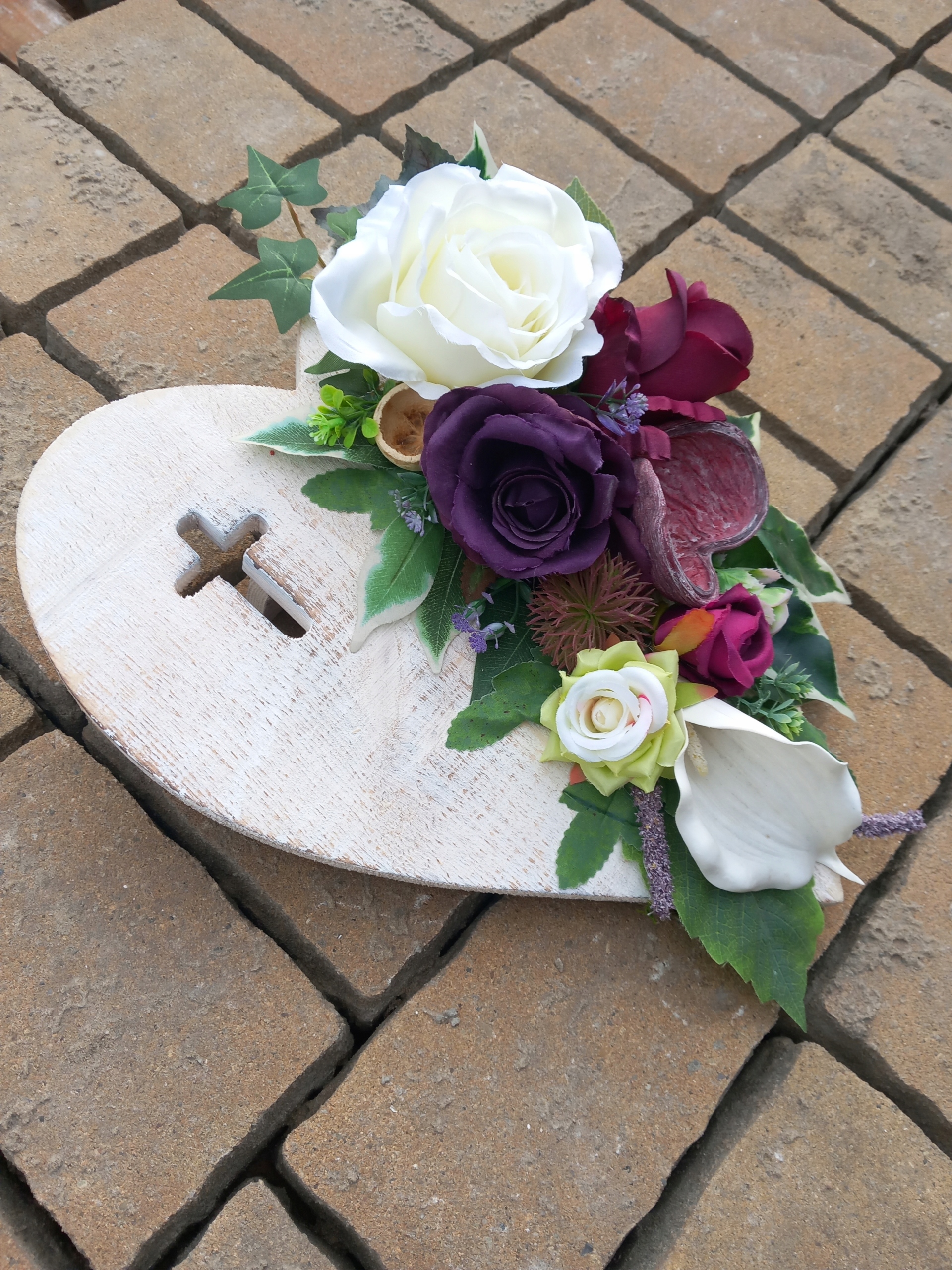 ДЕРЕВ'ЯНЕ СЕРЦЕ ПІДНЯТО НА МОГИЛІ КВІТИ КЛАДОВИЩЕ XL ВІКНО