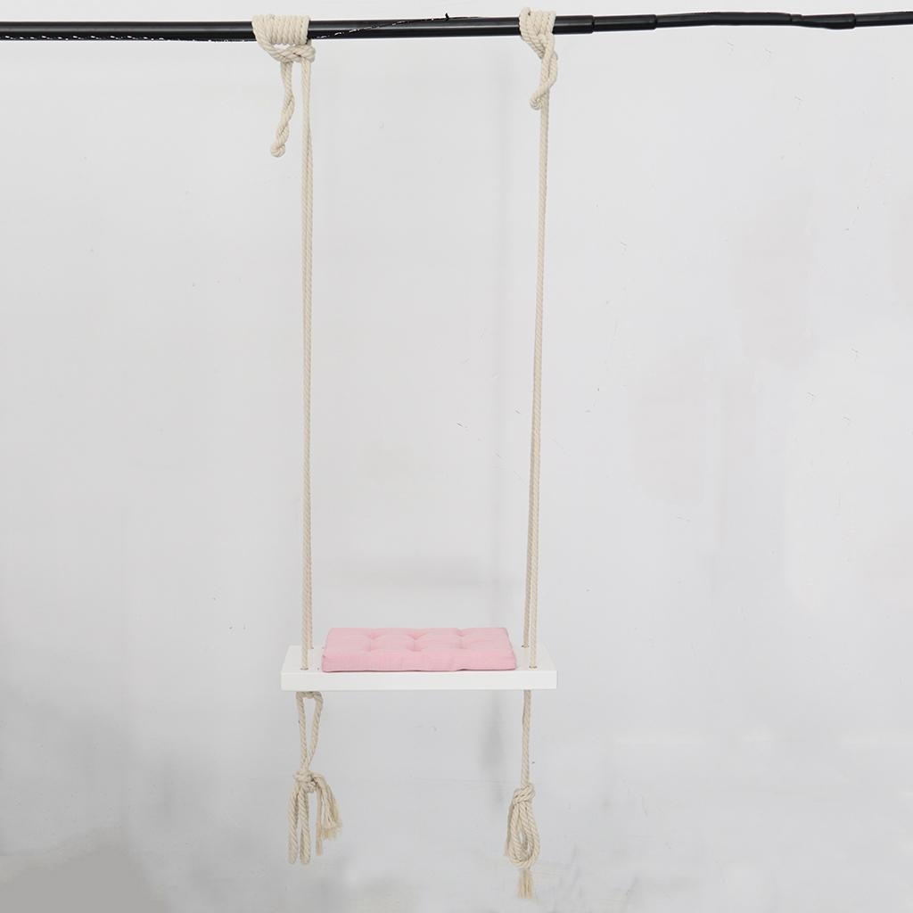 Дерев'яне сидіння-гойдалка з мотузкою та подушкою для дитячого майданчика, рожева