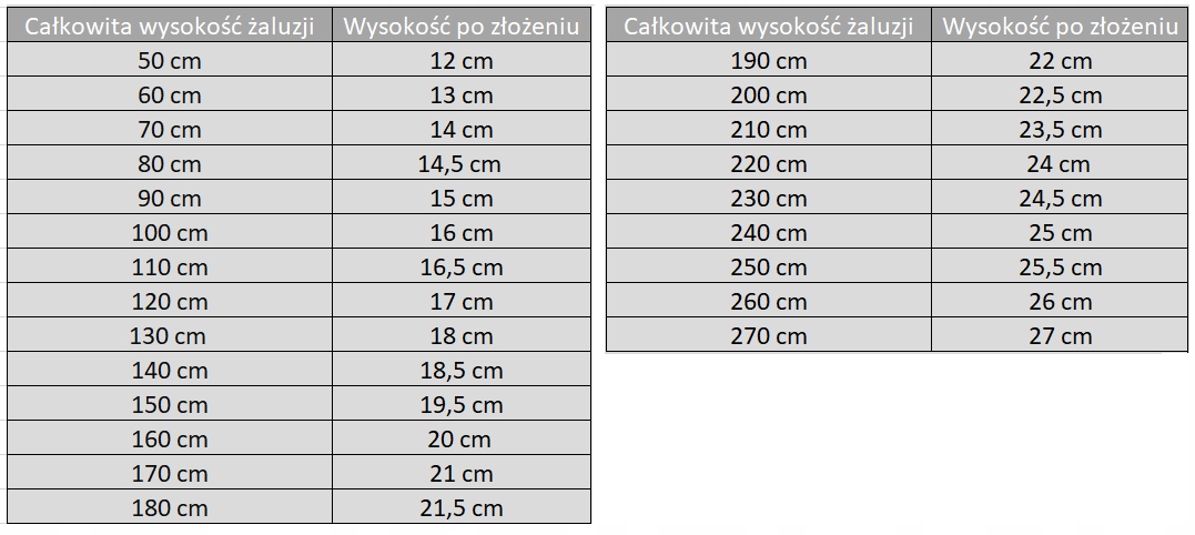 ❗ ВАЖНО ❗Ниже представлена таблица, показывающая, сколько места займут жалюзи в свернутом виде – проверьте, можно ли будет открыть окно после складывания жалюзи. При заказе жалюзи учитывайте этот размер.