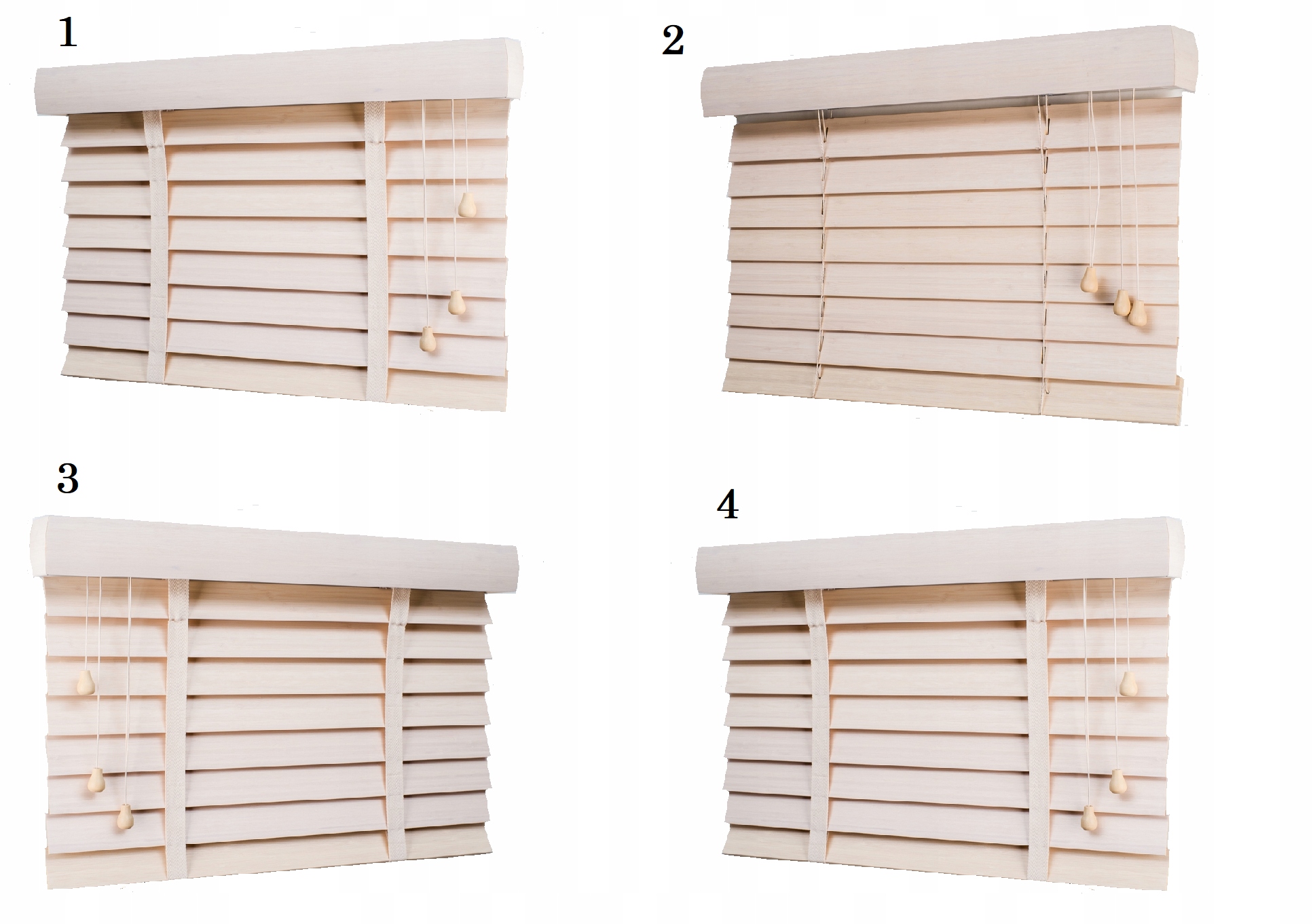▶️ У шторы стандартные управляющие шнуры с правой стороны (4) b> - если у жалюзи есть завязки с левой (3) стороны - сообщите нам при оформлении заказа