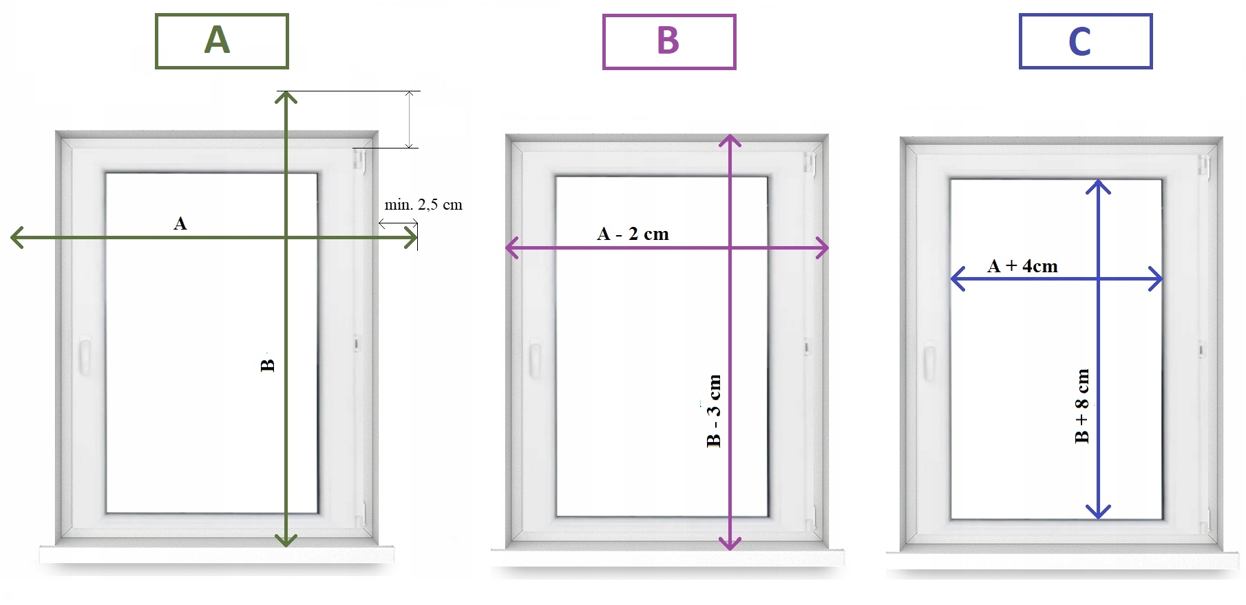 - Высота - Вам необходимо измерить высоту реката окна и вычтите 3 см