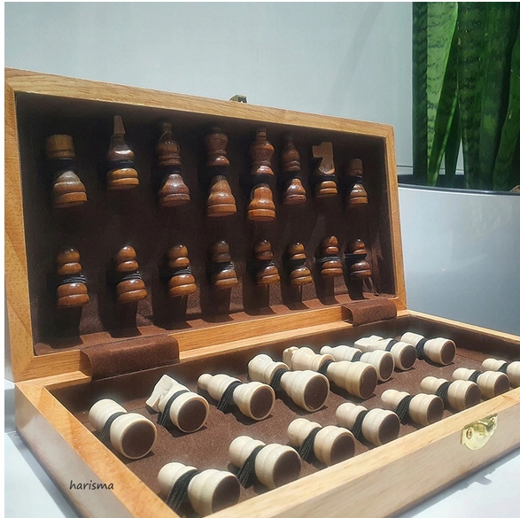 Традиционные массивные шахматы из каучукового дерева с резными фигурками из березы. Игра, развивающая стратегическое мышление и умение планировать действия.