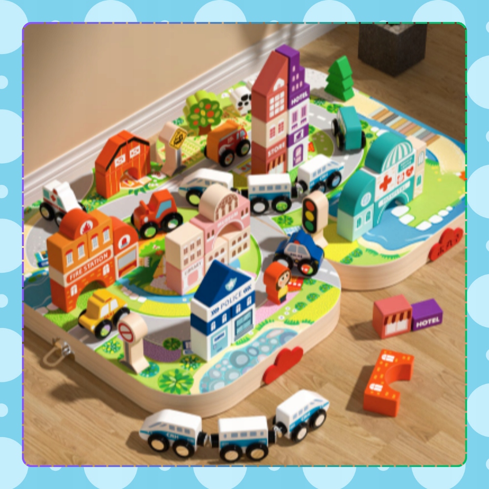⭐️Перенесите вашего ребенка в волшебный мир игры с нашей деревянной шкатулкой, которая в разложенном виде превращается в город, полный деталей! Это не просто игрушка, а настоящий центр творческих развлечений, который увлечет вас на долгие часы. Город, который ребенок может построить с помощью этого умного чемодана, предлагает безграничные возможности для создания историй и захватывающих приключений.