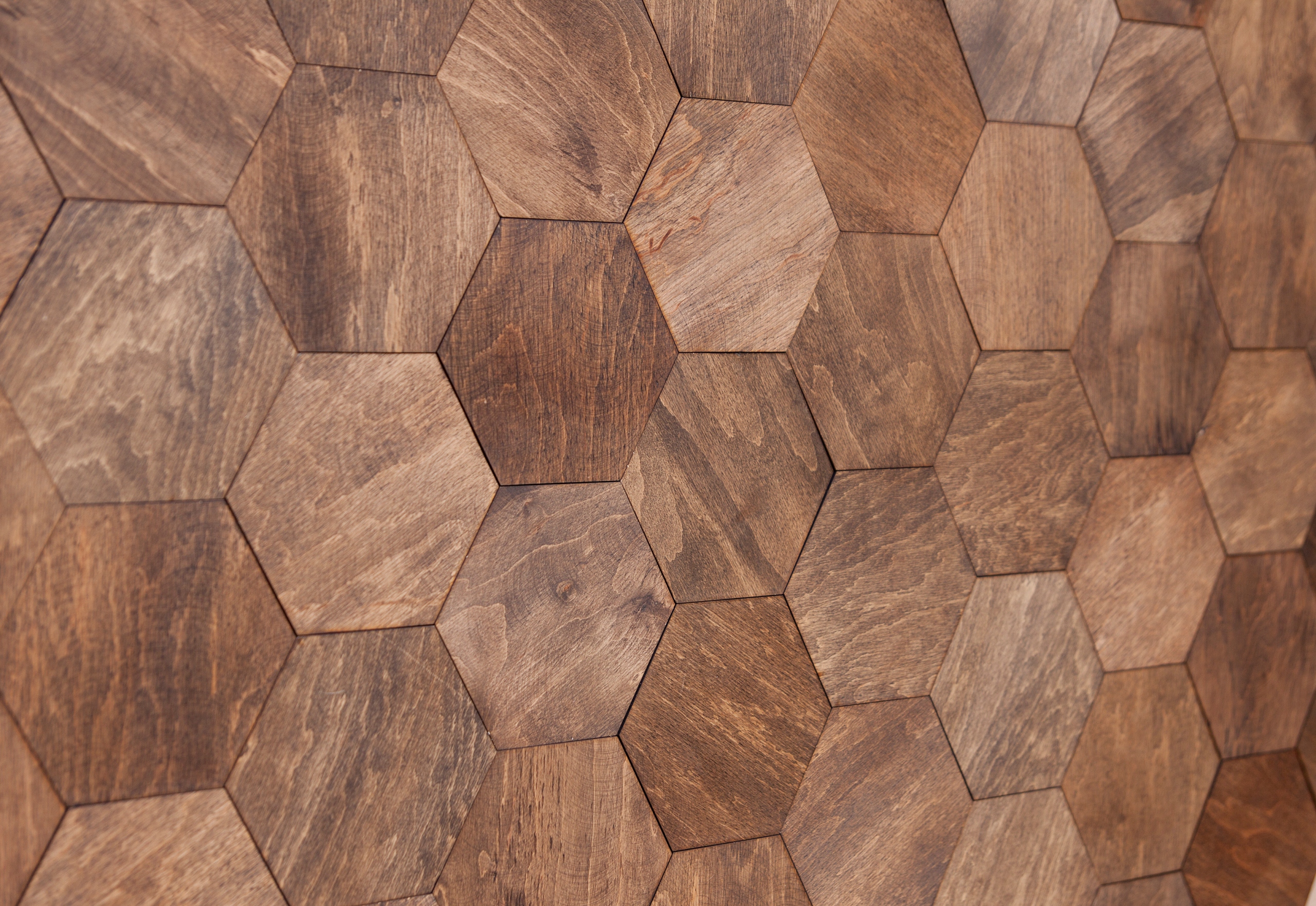 Современная деревянная мозаика в форме шестиугольников — отличный и экологичный продукт, который придаст любому интерьеру теплый и оригинальный характер.