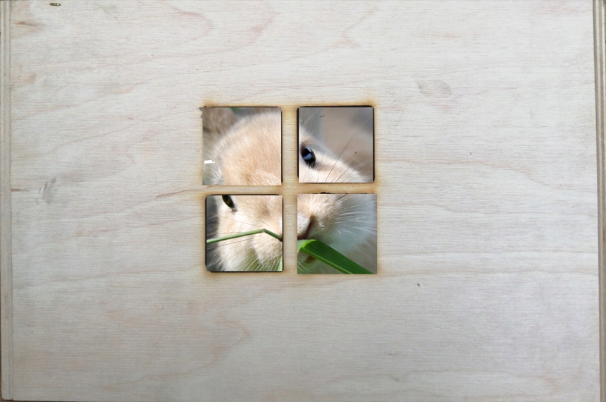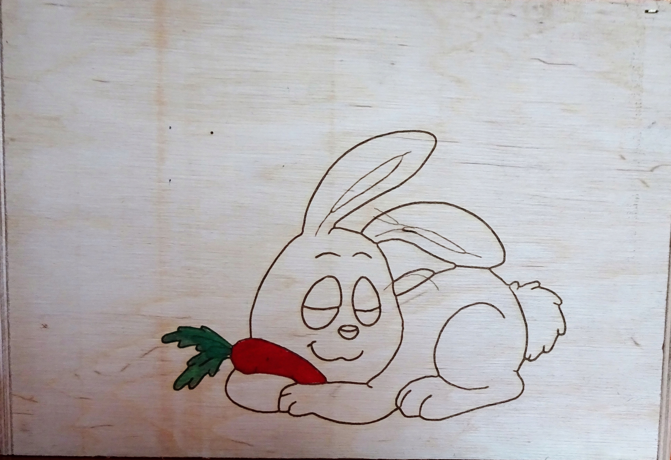 Справа окошко, через которое можно посмотреть на своего питомца, слева красивая гравюра спящего кролика.