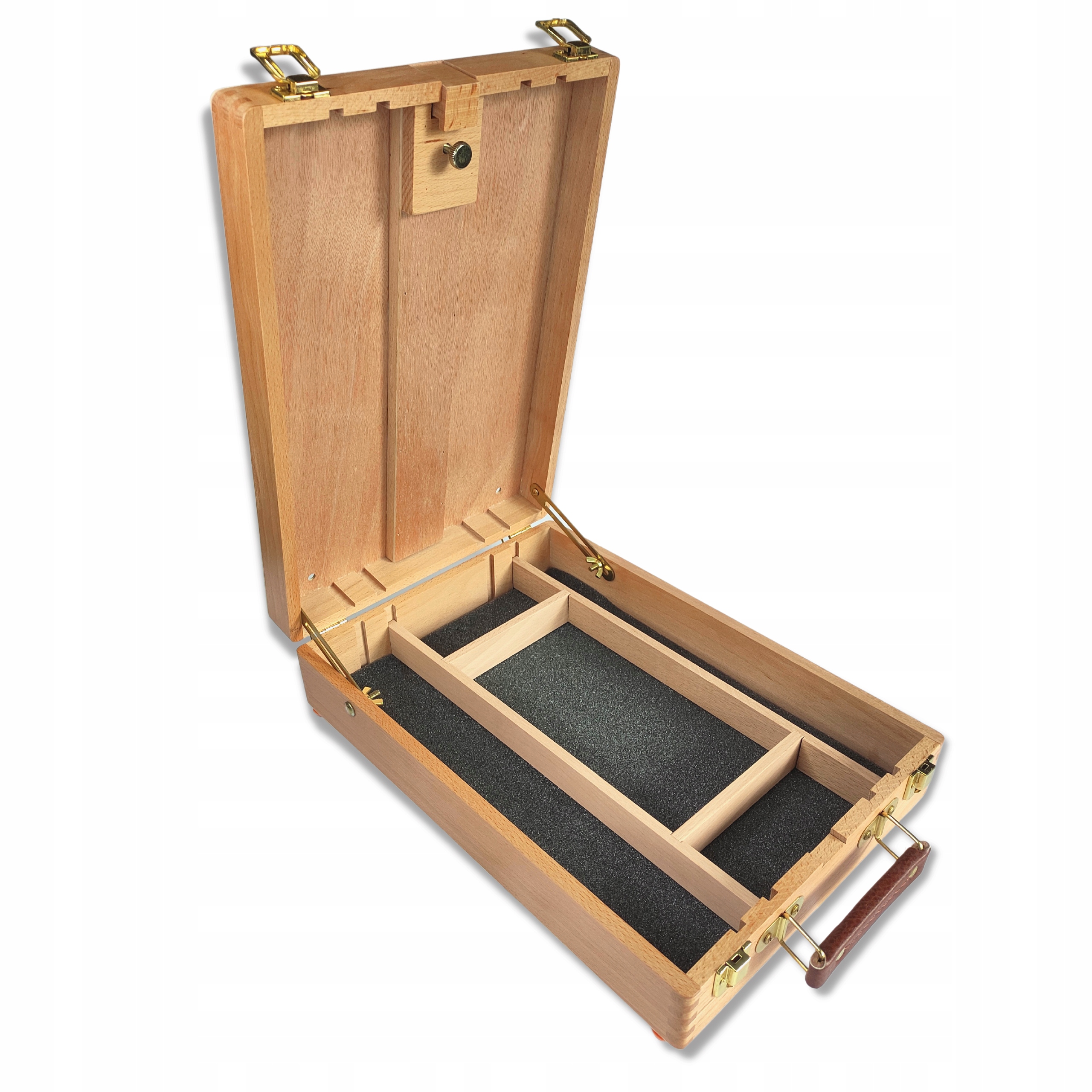 Мольберт в сложенном виде превращается в элегантный чемодан, который легко транспортировать. Благодаря этому вы можете выполнять работу где угодно, даже на открытом воздухе.