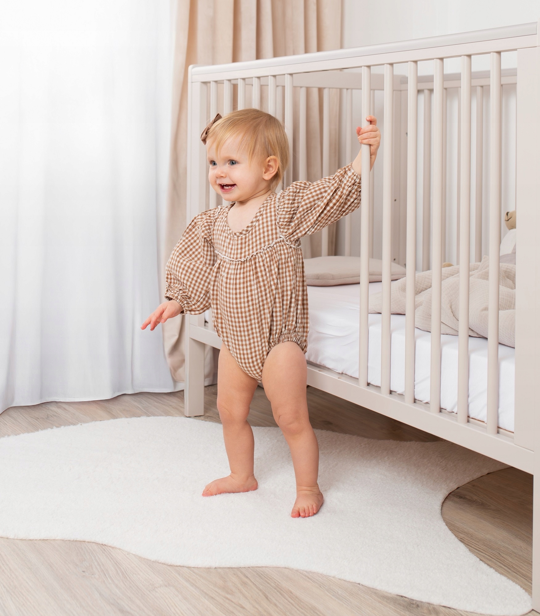 Благодаря размерам 120×60 см и трем уровням регулировки высоты дна, кроватка «растет» вместе с ребенком.