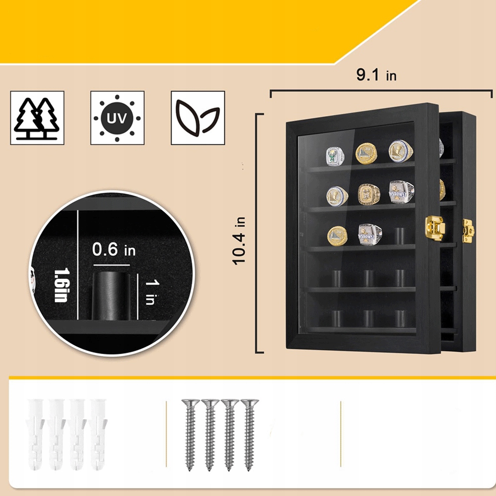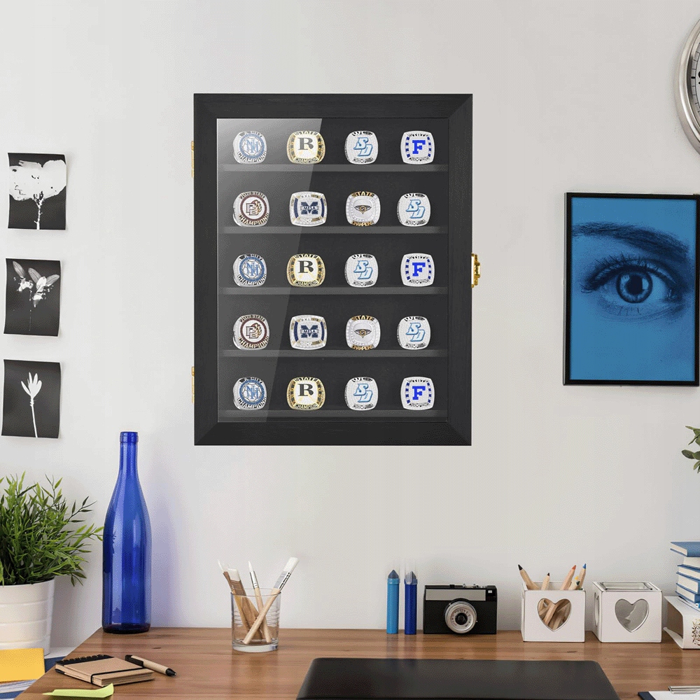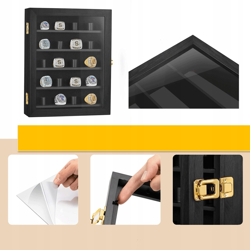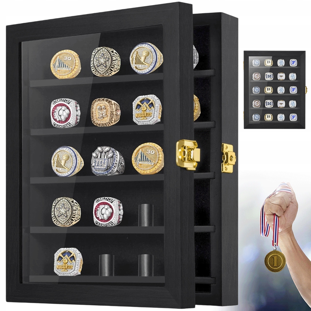 ✨Витрина для рингов чемпионата, деревянная коллекционная витрина, подарок для болельщика, витрина для медалей, хранение колец НБА, витрина из плексигласа, спортивная коллекция, витрина для трофеев, деревянная шкатулка из орехового дерева, защищенная витрина с ключом, идея подарка для мужчины, аксессуары для любителей спорта, витрина с регулируемыми полками, элегантная витрина для сувениров.