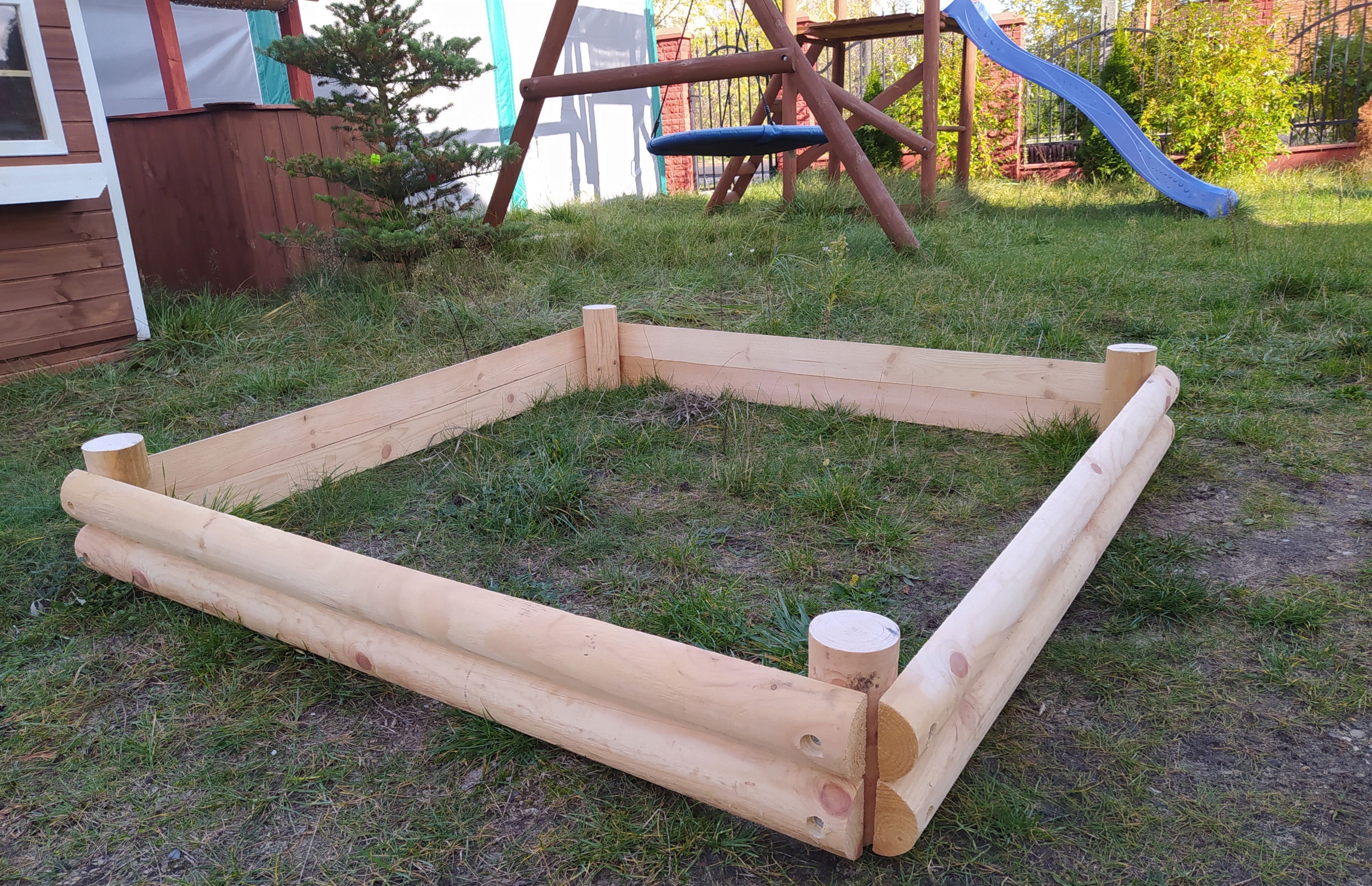 Наши детские площадки изготовлены из катаного бревна* диаметром около 10 см.