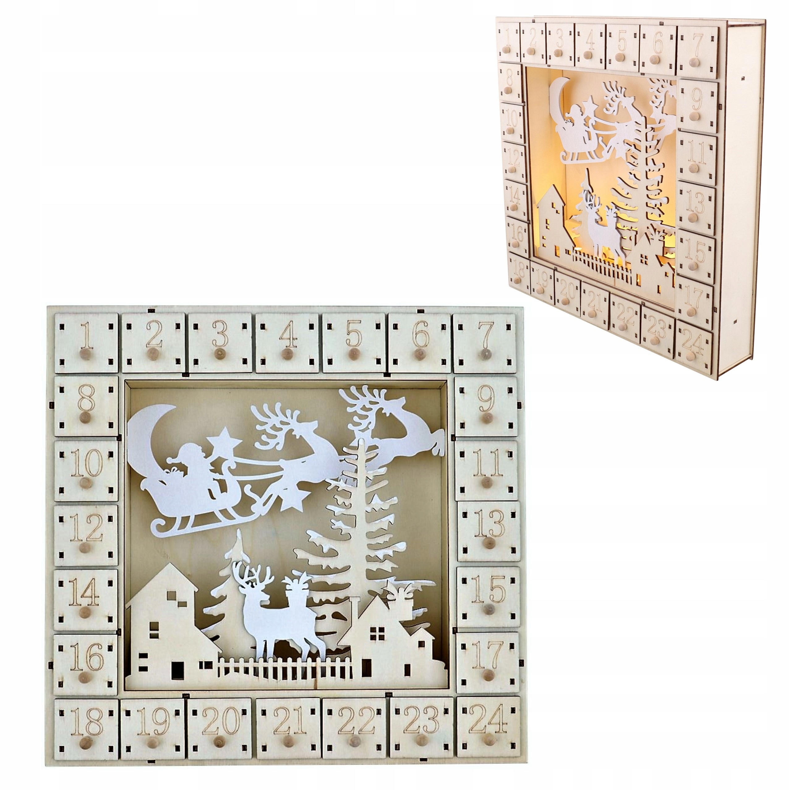 ДЕРЕВЯННЫЙ ДЕКОРАТИВНЫЙ АДВЕНТ-КАЛЕНДАРЬ СО СВЕТОДИОДНОЙ ПОДСВЕТКОЙ