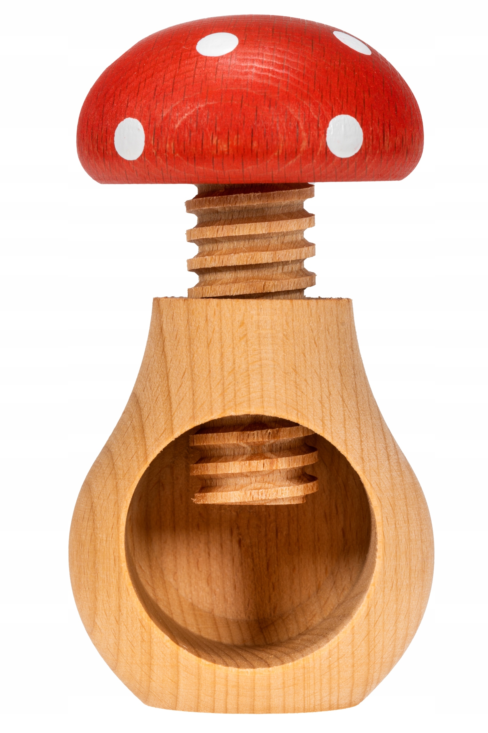 Щелкунчик грибовидный. Сделано в Польше из высококачественного бука. Винтовой механизм, соединяющий две части, эффективно измельчает орехи. Он может обрабатывать крупные орехи – грецкие и мелкий фундук. Это небольшое и простое в использовании устройство будет полезно круглый год. Благодаря этому щелкунчику вы сможете легко и эффективно расколоть каждый орех, приложив небольшое усилие.