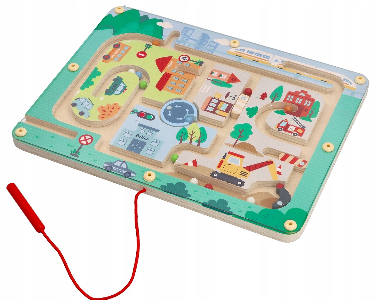 Магнитный лабиринт представляет собой деревянную доску с красивым принтом, на которую помещено прозрачное пластиковое стекло. Соединившись между собой, они не позволяют шарикам высыпаться. Магнитная палочка, прикрепленная к основанию и соединенная с ним веревочкой, также имеет свое место. Кроме того, шарики имеют отверстия, что делает их легкими и удобными для перемещения. Отличное качество по хорошей цене.