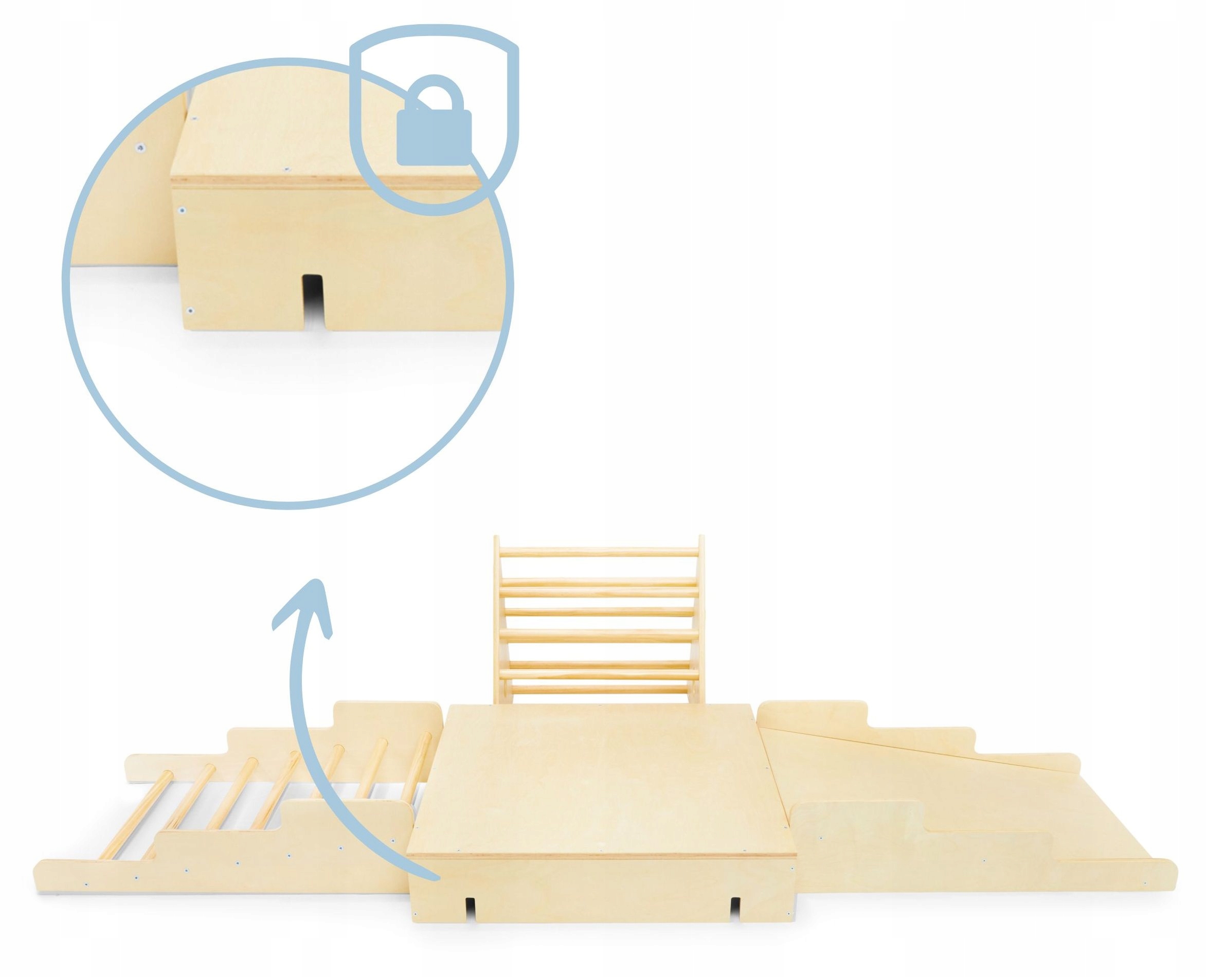 Деревянная игровая площадка — идеальный инструмент для тренировки вашего малыша. Каждое занятие на нем будет развивать уверенность в себе, координацию движений и баланс. Благодаря устойчивой и прочной конструкции игровая площадка безопасна и удобна в использовании. Прочные ступеньки лестниц обеспечивают динамическую игру.