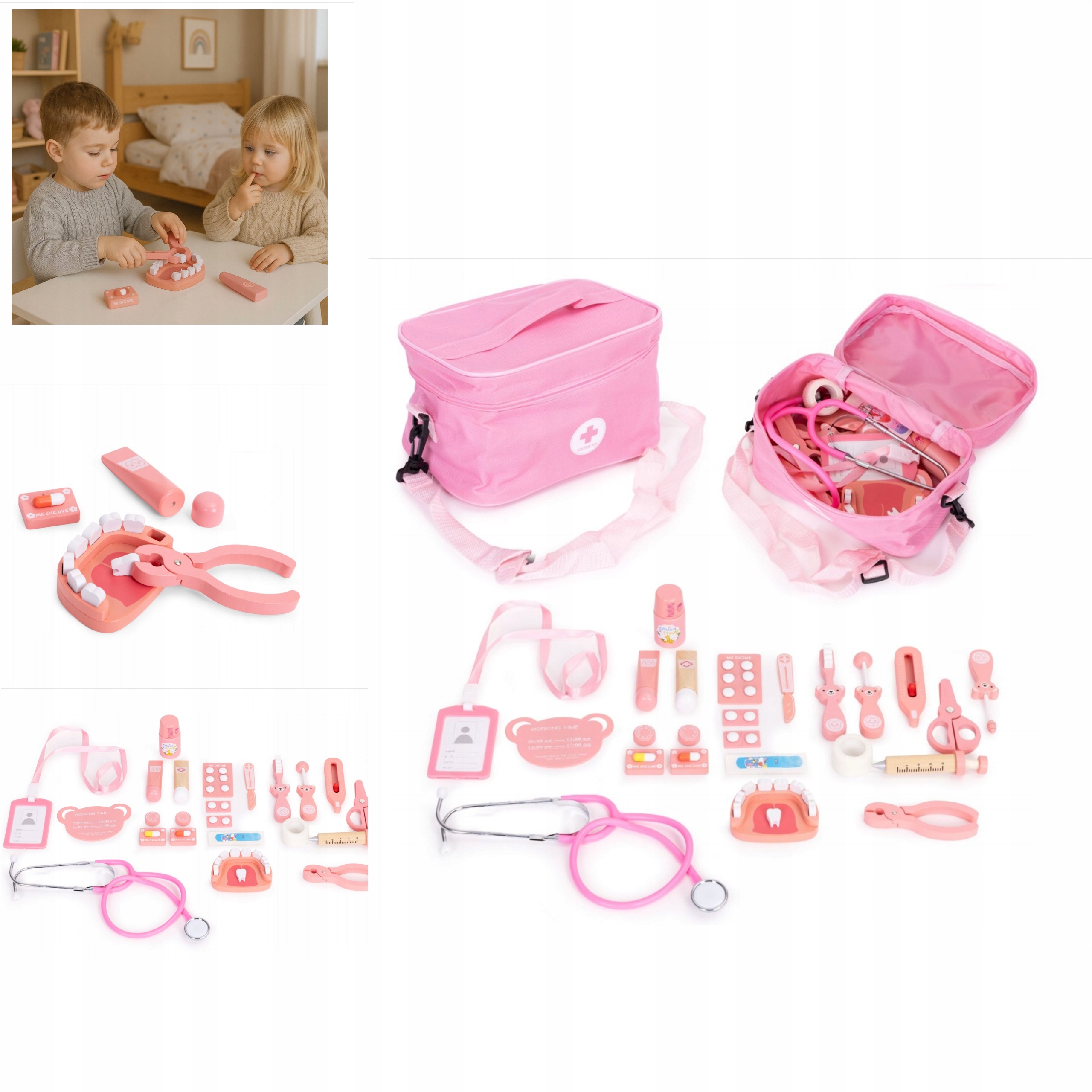 ДЕРЕВЯННЫЙ НАБОР «МАЛЕНЬКИЙ ДОКТОР» ЭКОМЕДИЦИНСКАЯ СУМКА ДЛЯ ДЕТЕЙ 24 ЭЛЕМЕНТА