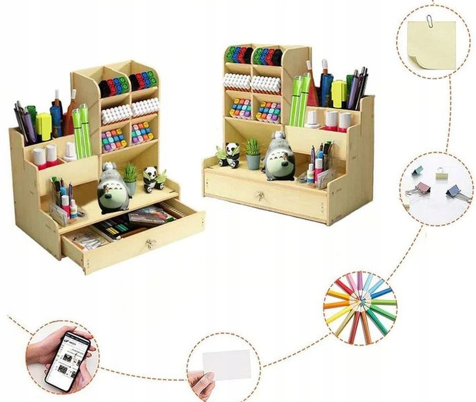 Широкий спектр применения: Органайзер для ручек подходит для всех типов канцелярских принадлежностей, таких как ручки, карандаши, линейки, ластики, скрепки, ножницы. и т. д. Деревянный настольный органайзер можно использовать не только дома, но и в школах и офисах.