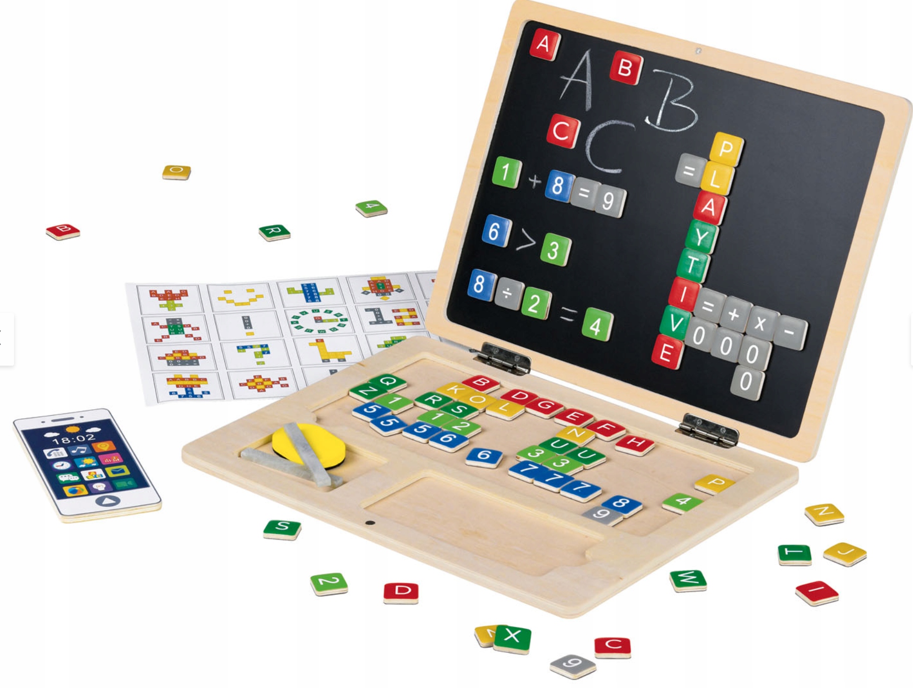 ДЕРЕВЯННЫЙ НОУТБУК ДЛЯ ДЕТЕЙ МАГНИТЫ 2in1 PLAYTIVE