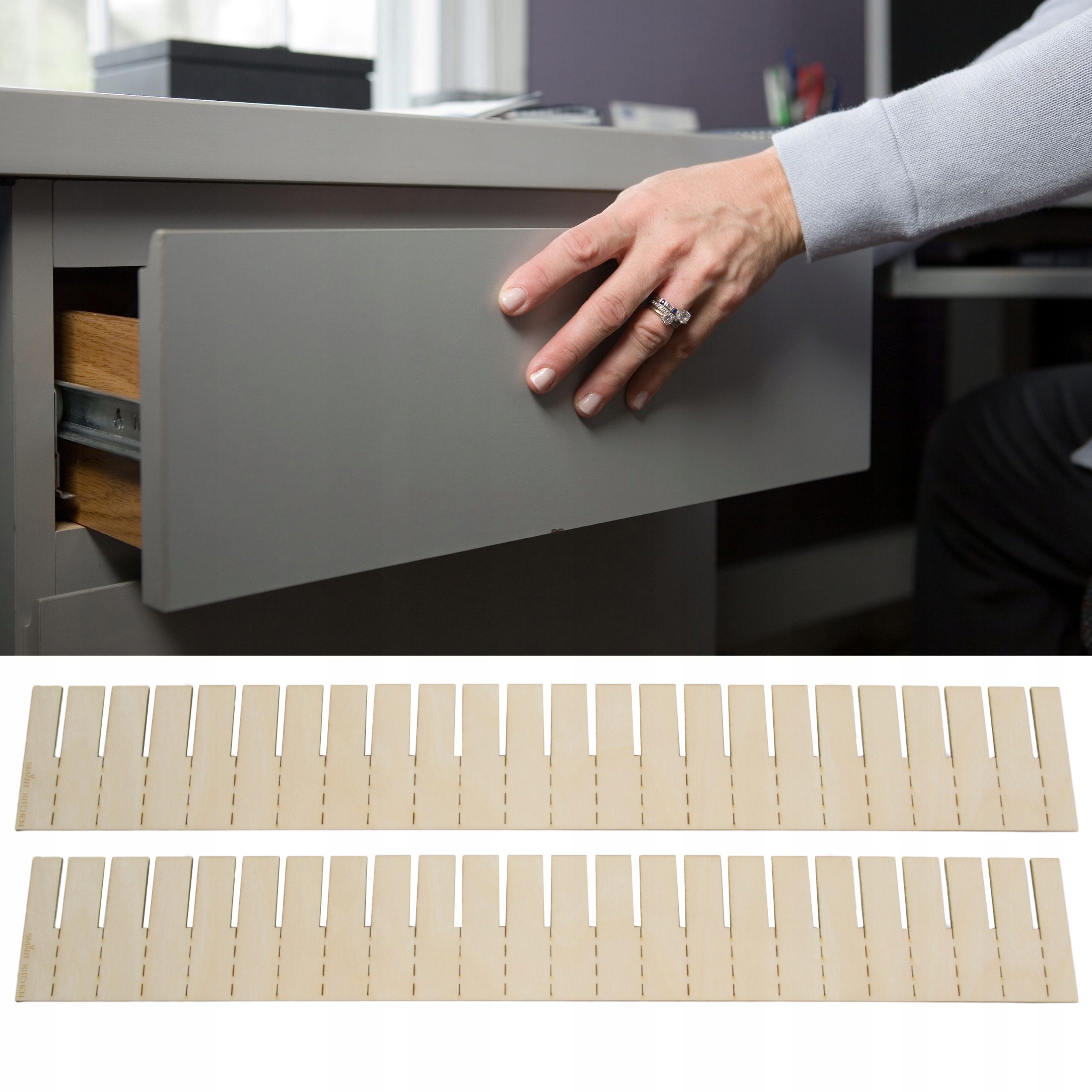 ДЕРЕВЯННЫЙ ОРГАНИЗАТОР ДЛЯ ЯЩИКОВ 43x13CM РАЗДЕЛИТЕЛЬ x2