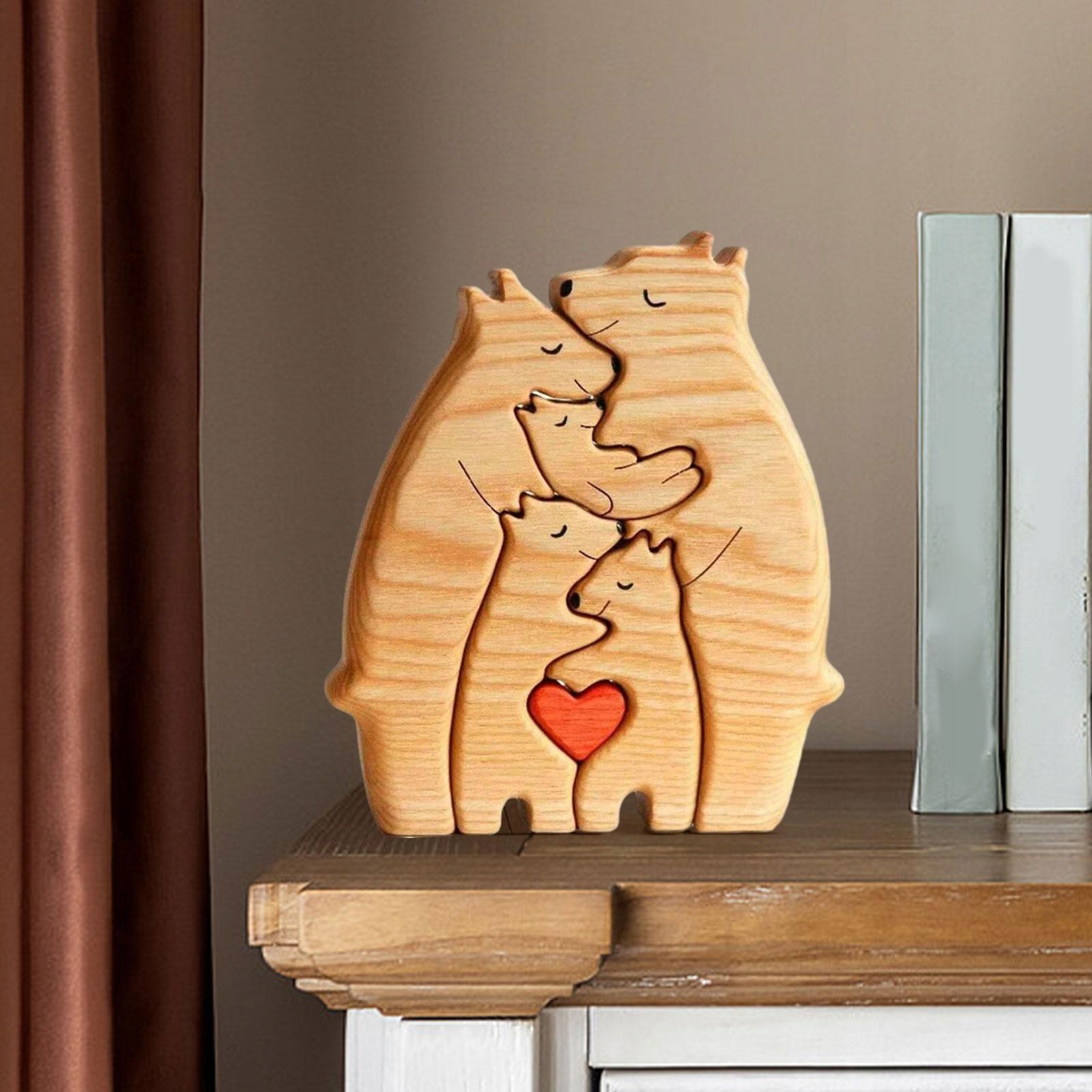 Медвежья семья Деревянный художественный пазл Деревянная скульптура в подарок семье на Рождество 5 мишек