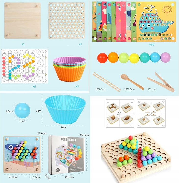 ⭐Творчество и воображение: Игра с головоломкой Монтессори с шариками и шаблонами дает вашему ребенку возможность творчески экспериментировать. Ребенок может создавать различные узоры и композиции, используя доступные шаблоны, а также развивать фантазию и создавать собственные конструкции.
