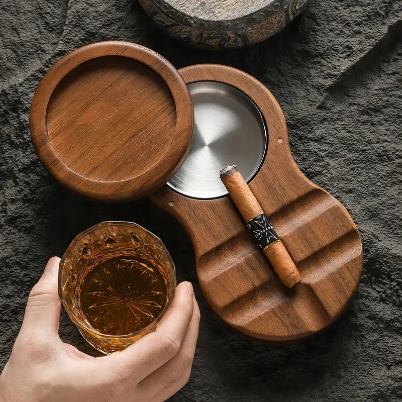 ДЕРЕВЯННЫЙ ПОДДОН СКРЫТАЯ ПЕПЕЛЬНИЦА ДЕРЖАТЕЛЬ ДЛЯ СТАКАНА ВИСКИ ПЕПЕЛЬНИЦА