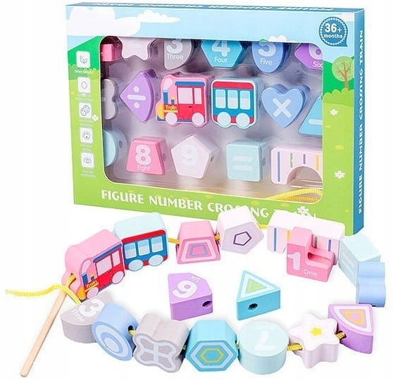 Деревянные нанизочные блоки в форме поезда.