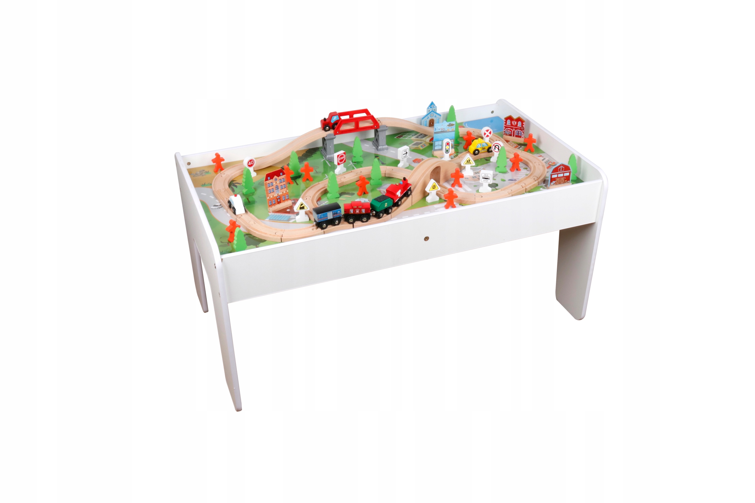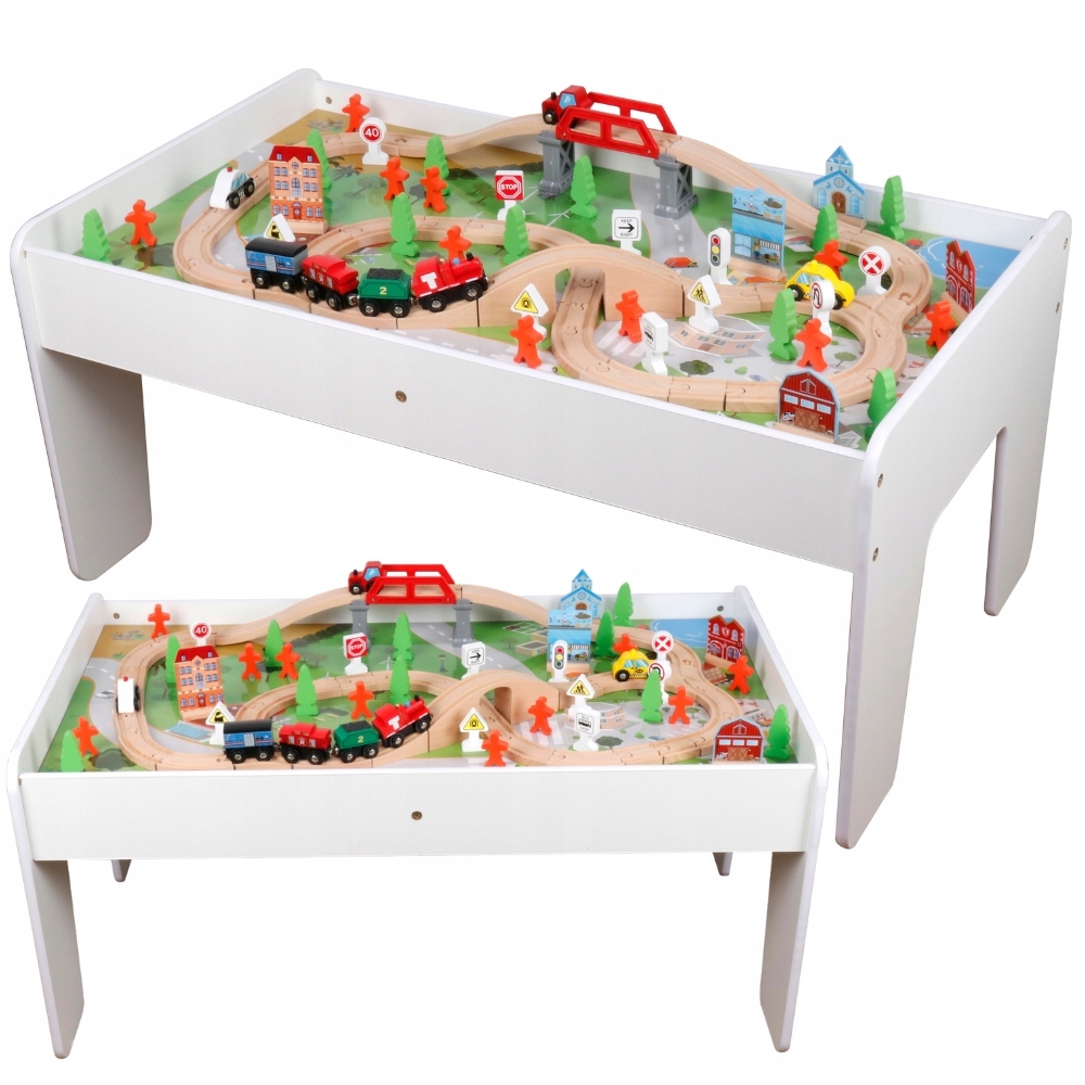 ДЕРЕВЯННЫЙ ПОЕЗД С МАШИНАМИ + ГОРОД И ИГРОВОЙ СТОЛ 90 элементов