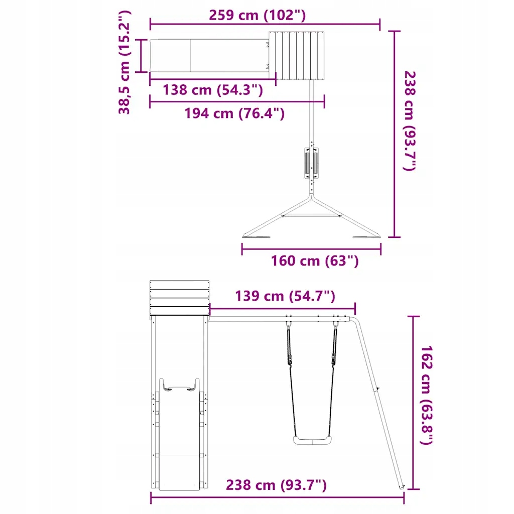- Многофункциональность: В комплект входит платформа для лазанья высотой 90 см, волнистая горка, качели и песочница, идеальное место для игры нескольких детей.