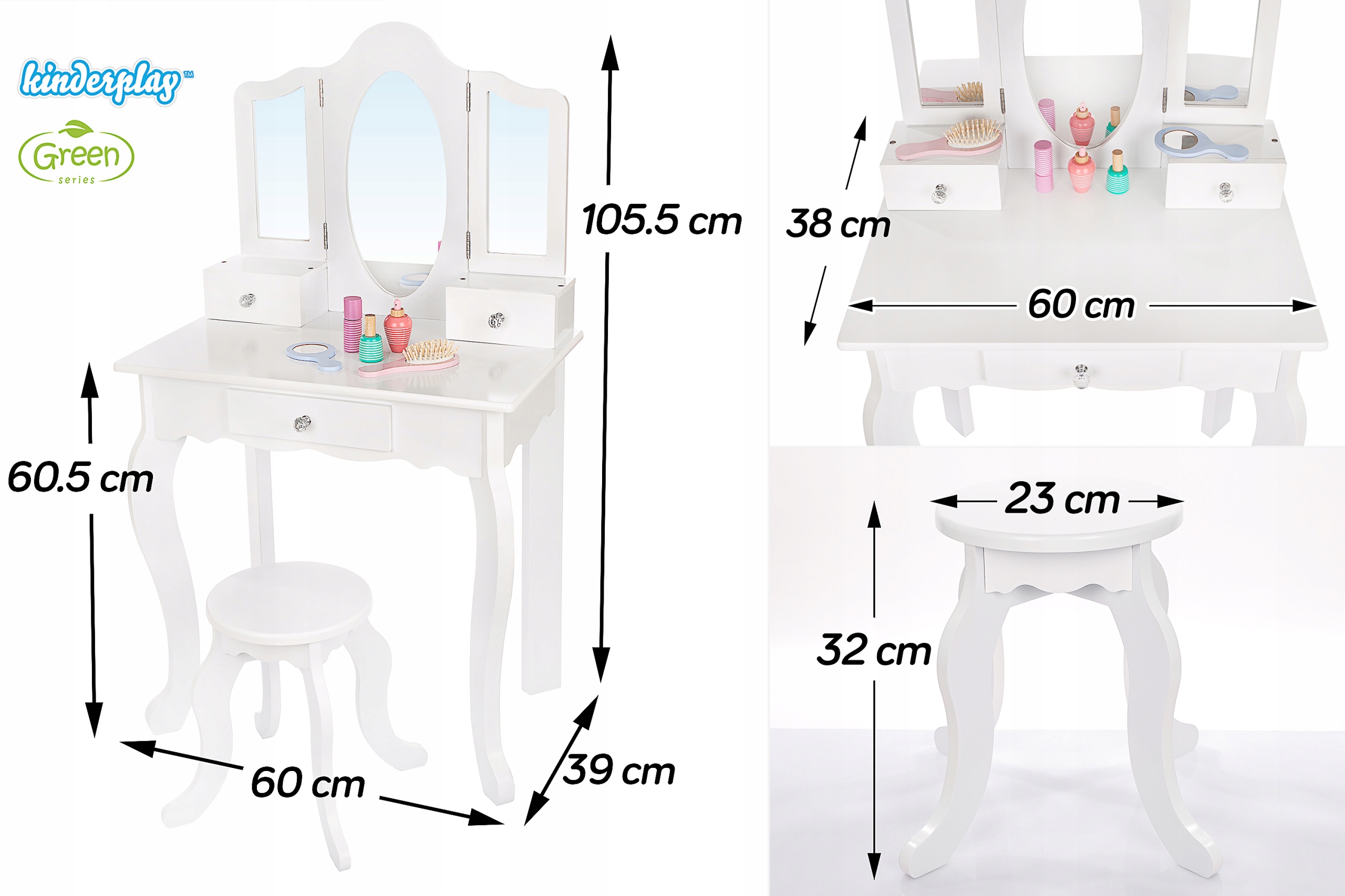 ДЕРЕВ'ЯНИЙ ТУАЛЕТНИЙ СТОЛ KINDERPLAY ДЛЯ ДІВЧАТОК 105,5 СМ + ТАТУЮВАННЯ