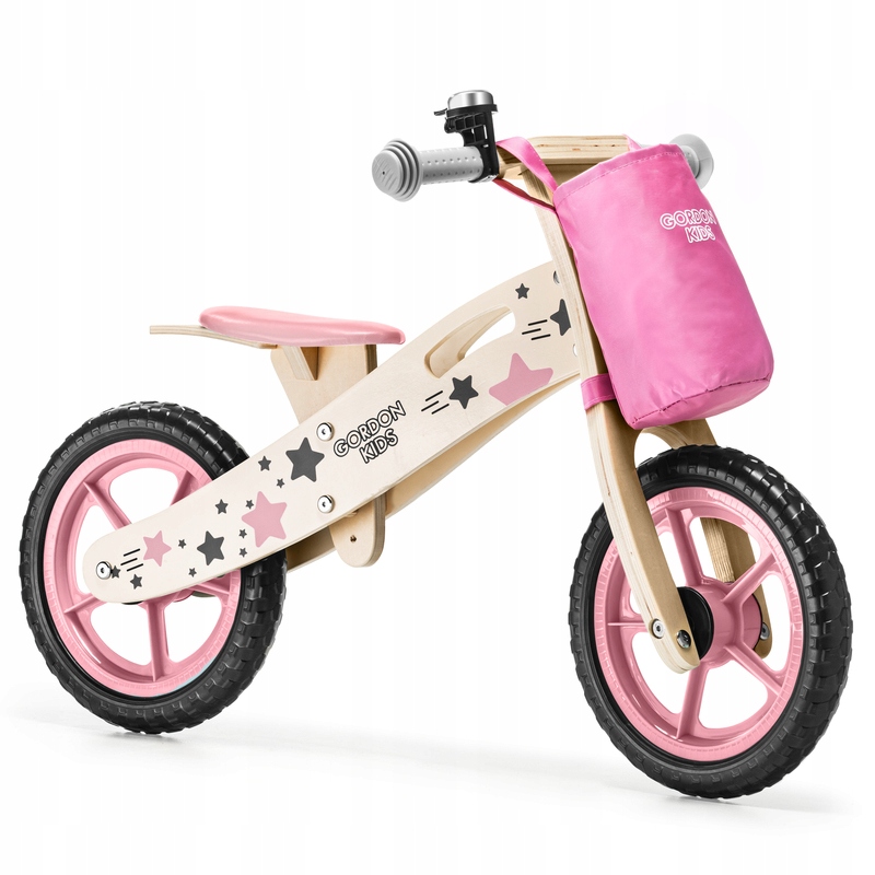 ДЕРЕВ'ЯНИЙ ВЕЛОСИПЕД З СУМКОЮ БАЛАНСИРОВАЛЬНИЙ ВЕЛОСИПЕД 12" ДИТЯЧІ КОЛЕСА EVA РОЖЕВИЙ