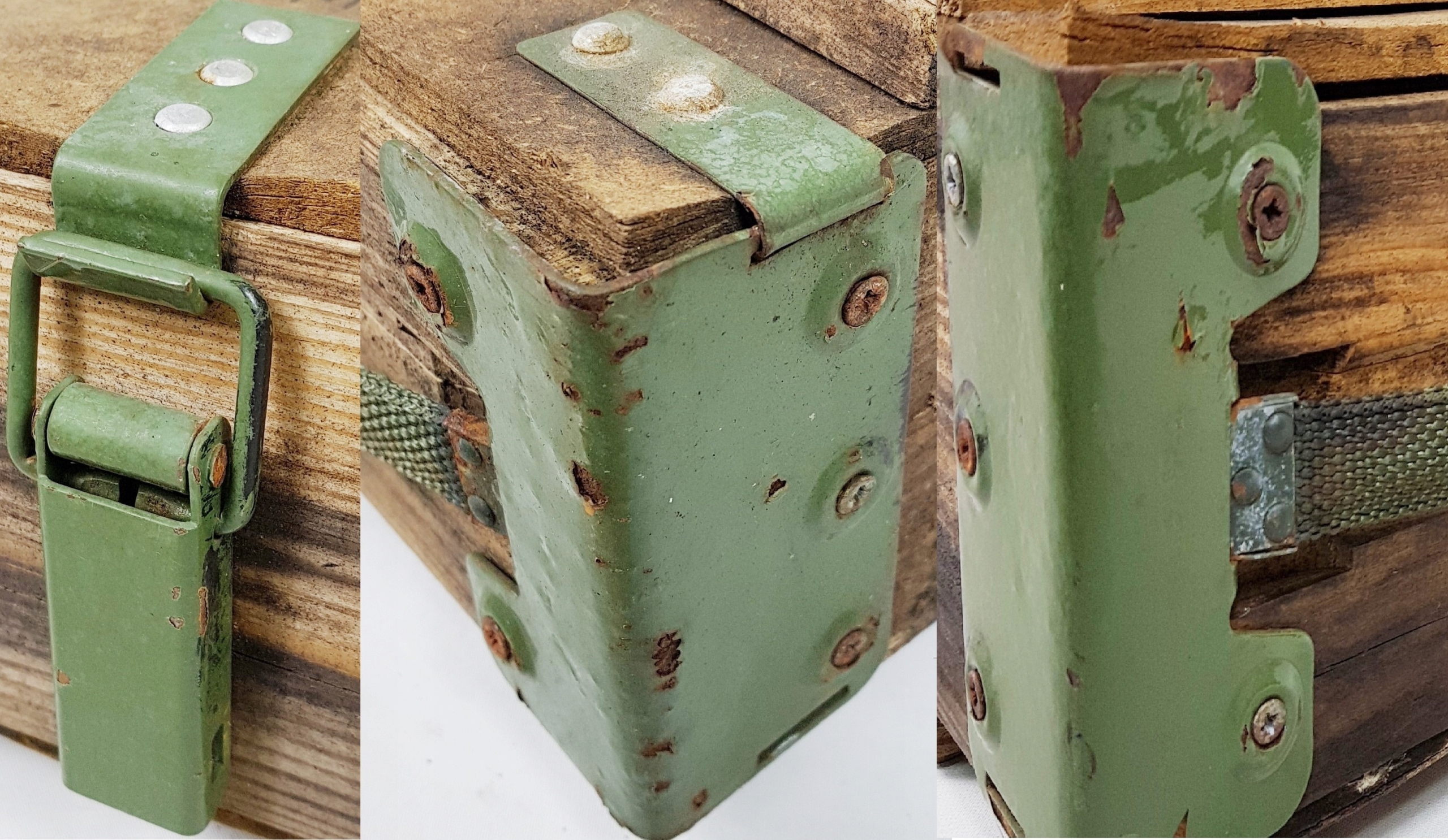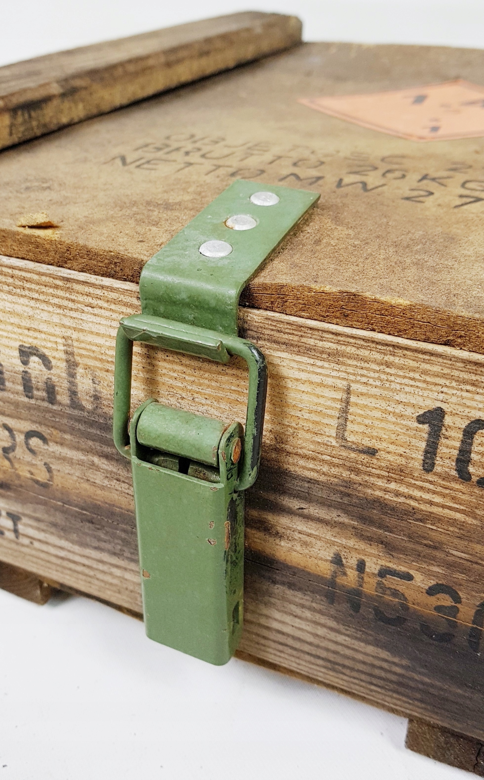 Военный деревянный ящик для боеприпасов можно использовать для хранения небольшого военного снаряжения и других полезных предметов. Идеально подходит в качестве ящика для инструментов или других мелких предметов. Закрывается на петли и металлическую застежку, которую можно герметично закрыть.