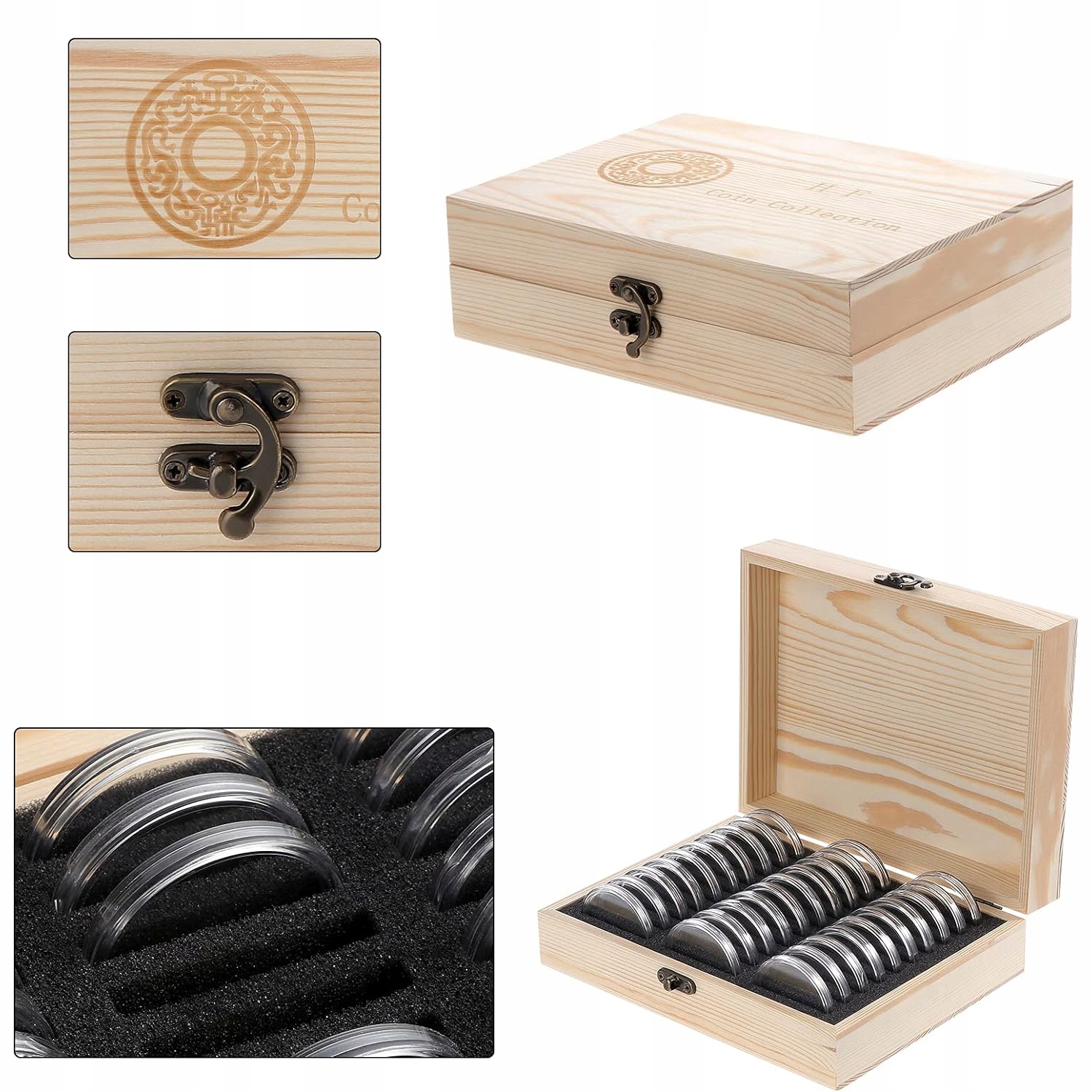 🪙 【Ящик для хранения монет】 Размеры ящика для хранения составляют примерно 210 x 163 x 65 мм, Изготовлен из древесины сосны премиум-класса, вмещает 30 пластиковых капсул для монет. Прозрачные монетные капсулы облегчают хранение, просмотр и обмен монет. Деревянный ящик для хранения монет практичен и долговечен, идеально подходит для защиты капсул для монет, организации и уборки.