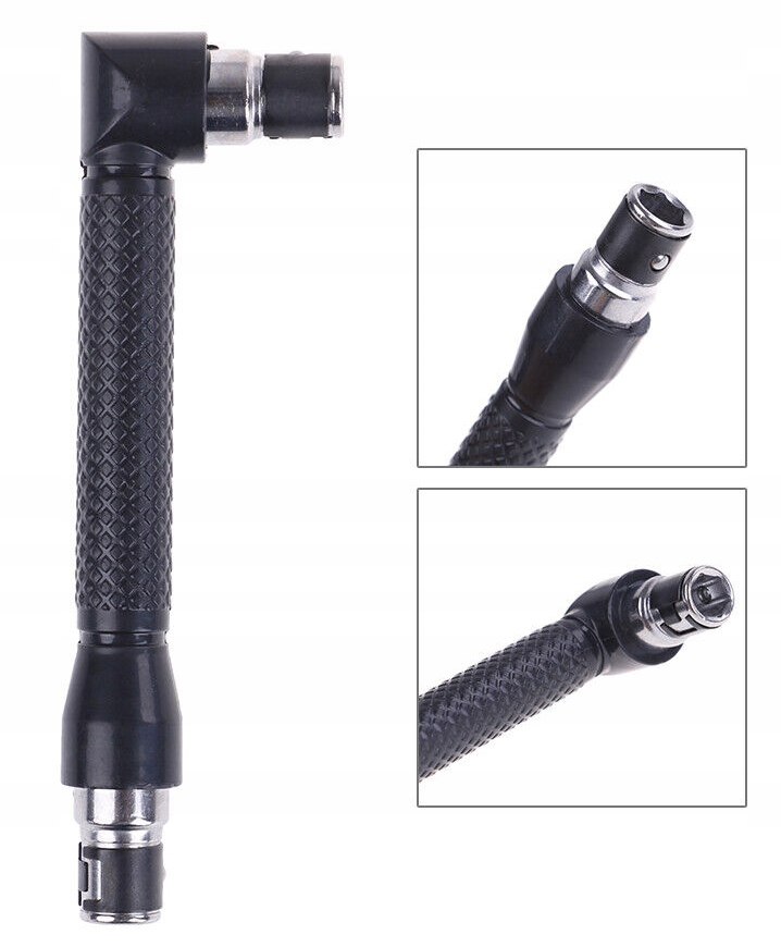 Универсальный угловой держатель — идеальный инструмент, с помощью которого мы можем вкручивать или выкручивать различные типы винтов в тех местах, где традиционные решения не работают. Отвертка имеет двустороннюю головку с более коротким угловым наконечником 90° и более длинным прямым наконечником.