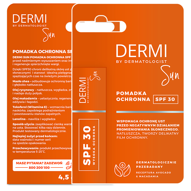 DERMI SUN ЗАЩИТНАЯ ГУБНАЯ ПОМАДА SPF30 4.5G короткая дата