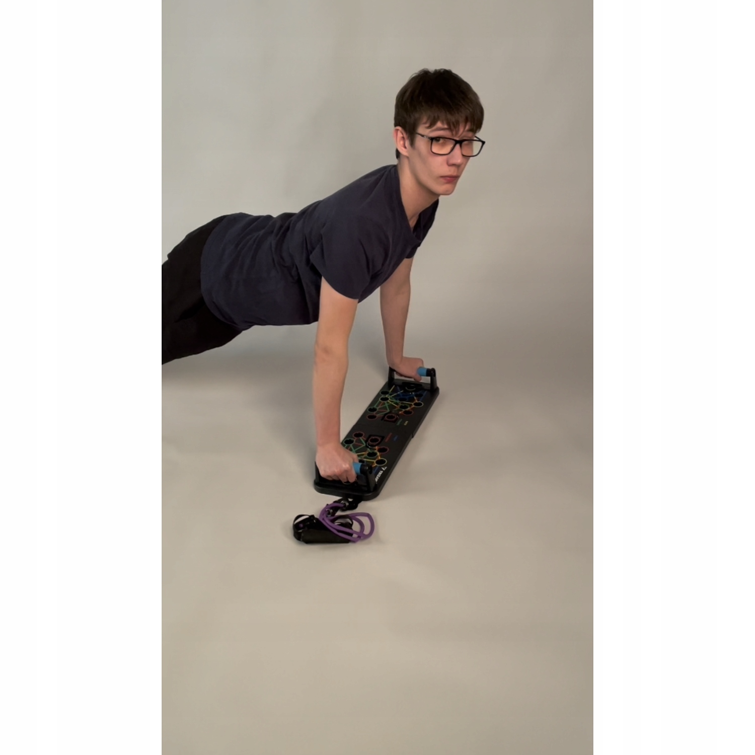 Наша многофункциональная доска для упражнений с ручками для отжимания и эластичными тросами — идеальное приспособление для домашнего спортзала! Благодаря этому приспособлению и собственным усилиям вы вылепите верхнюю и нижнюю части тела.