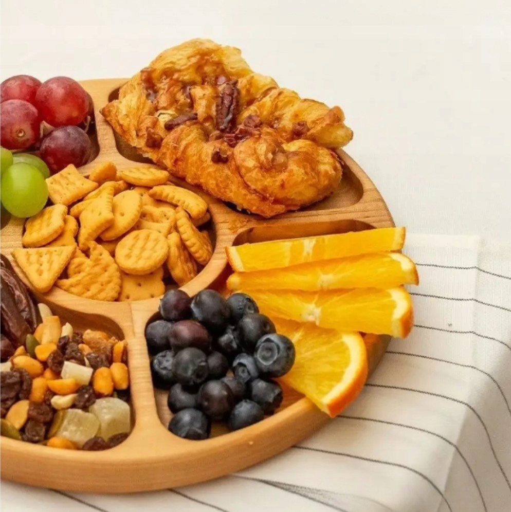 Пять отделений: Идеально расположенные отделения позволяют эстетично разделить различные виды закусок — от сыра и фруктов до орехов и соусов.