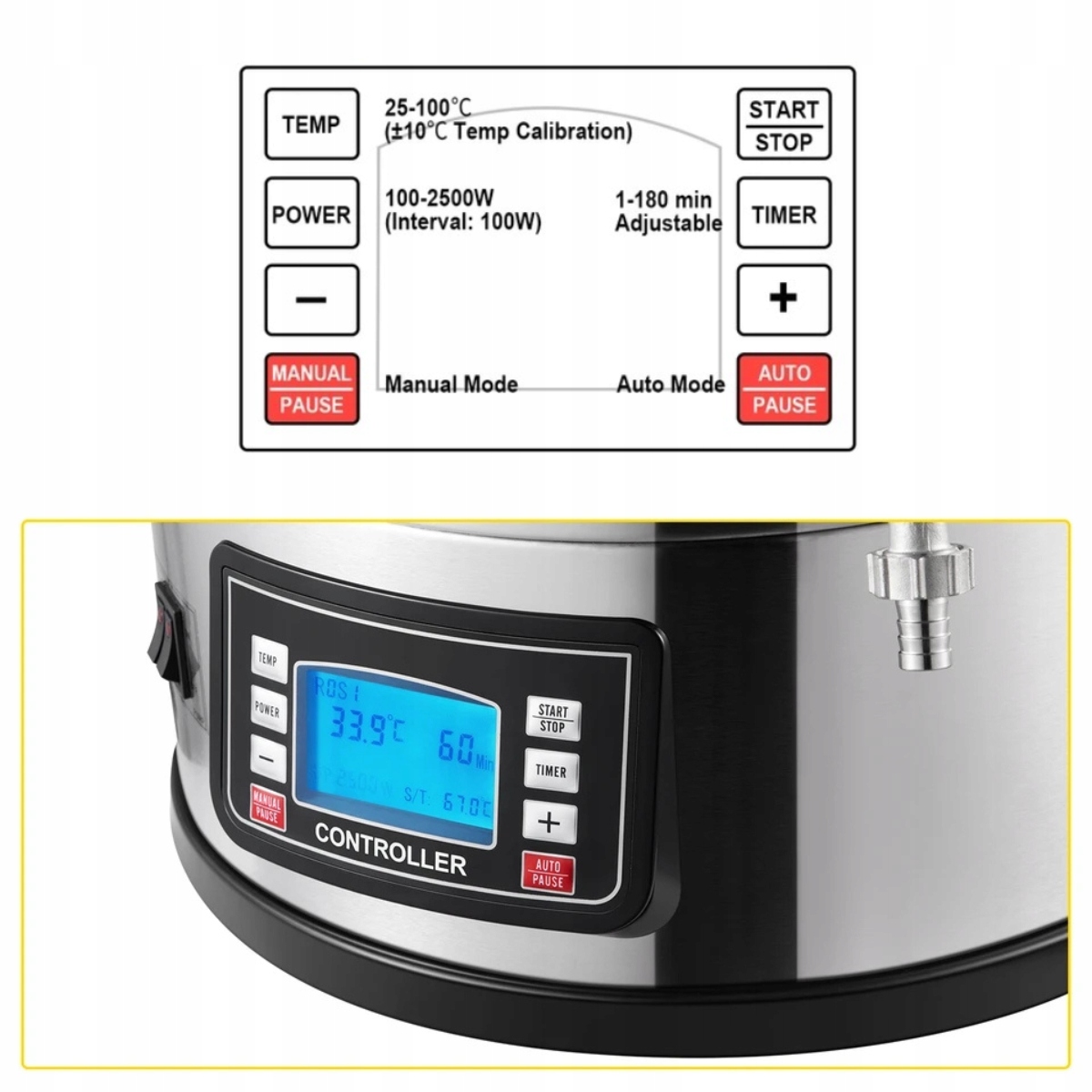 ✔ Интеллектуальная ЖК-панель управления: Богатый функционал панели управления позволяет контролировать температуру, мощность и свободное время. Система с автоматическим и безопасным режимом, памятью на 10 рецептов и напоминанием о необходимости добавления хмеля.