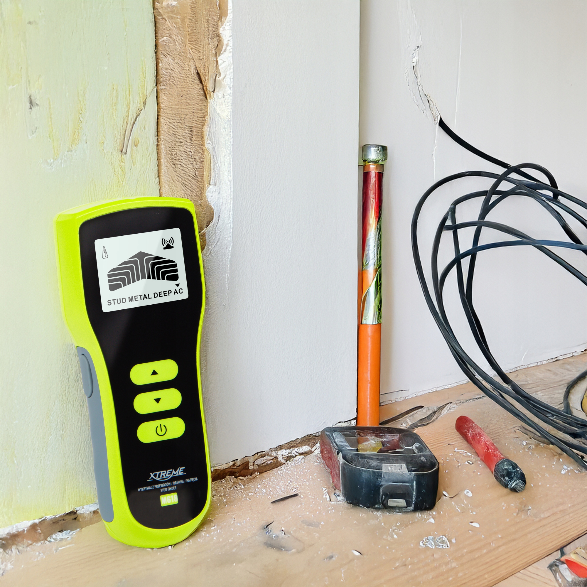 3in1 m618 - современный, точный инструмент обнаружения металлов, кабели напряжения и деревянные элементы. Его компактная конструкция и интуитивная работа делают его незаменимым в каждой мастерской и на строительной площадке