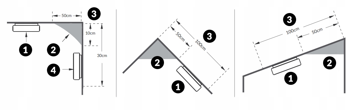• Мертвая зона – это пространство, которое есть в каждой комнате. Из-за отсутствия движений воздуха, их незначительного или слишком интенсивного (в случае близости к вентиляционным решеткам) возникновения датчик не следует устанавливать в мертвой зоне