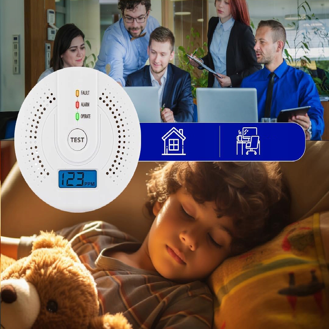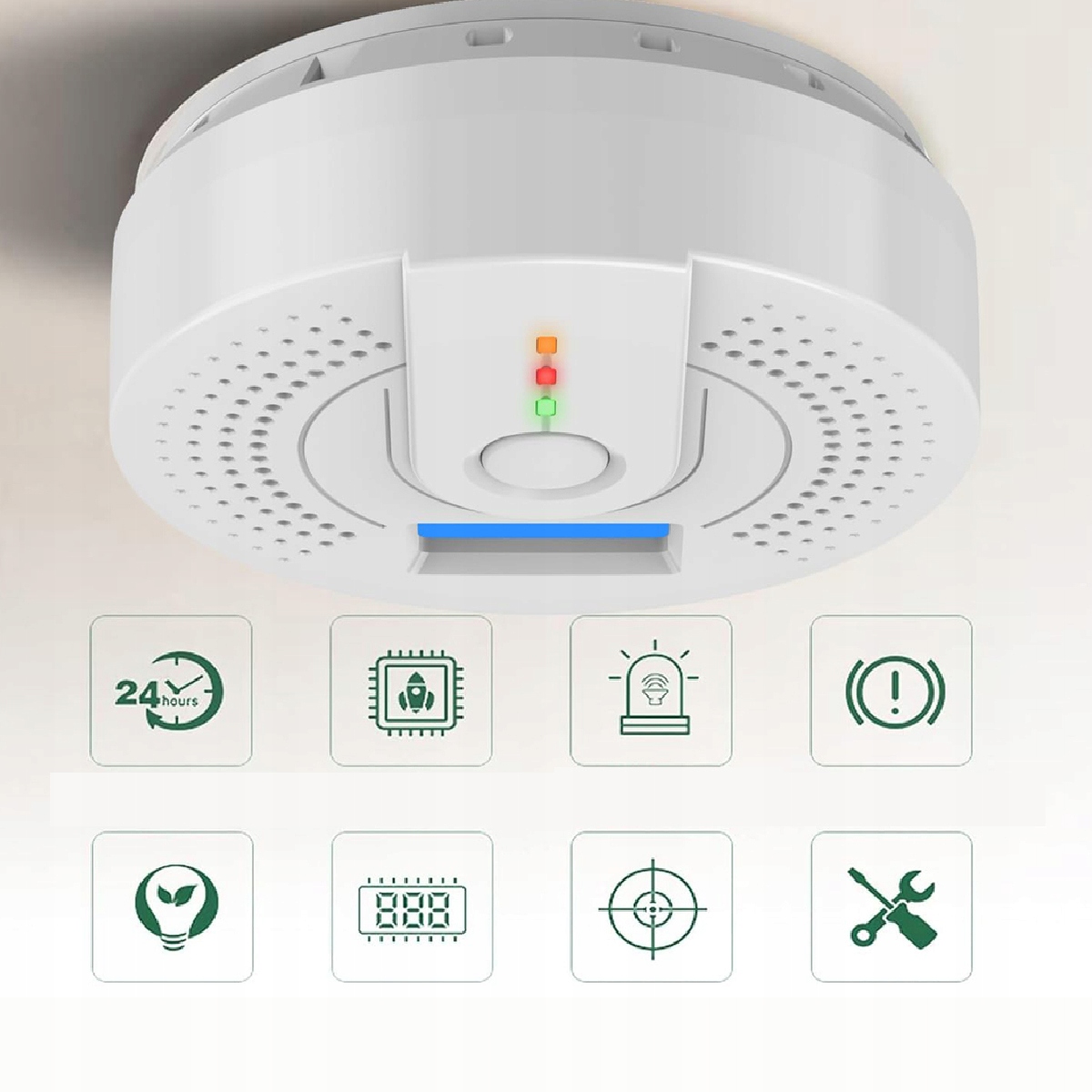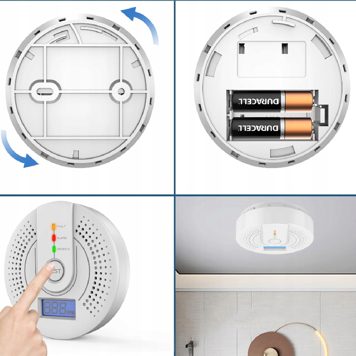 👩👦👩👧👦👨👩👧👦 [Простая установка] Этот датчик угарного газа питается от 2 батарей типа АА по 1,5 В (не входят в комплект), устойчив к сбоям питания, низкое энергопотребление, длительное время ожидания, прост в установке, никаких специальных инструментов не требуется. Просто закрепите его на стене или потолке, и он готов к использованию. Компактный размер и элегантный внешний вид позволяют ему идеально вписаться в любой интерьер.