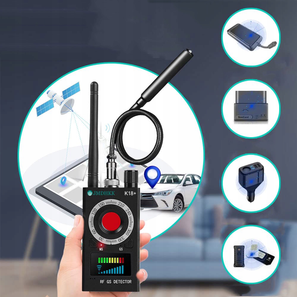 【С радиочастотным обнаружением】 Профессионально и точно определяет местоположение скрытых камер, звуковых подслушивающих устройств и GPS-трекеров в в течение нескольких минут. На задней панели расположены 6 лазерных ламп высокой яркости, которые помогут вам найти линзу с микроотверстиями и избежать промахов.