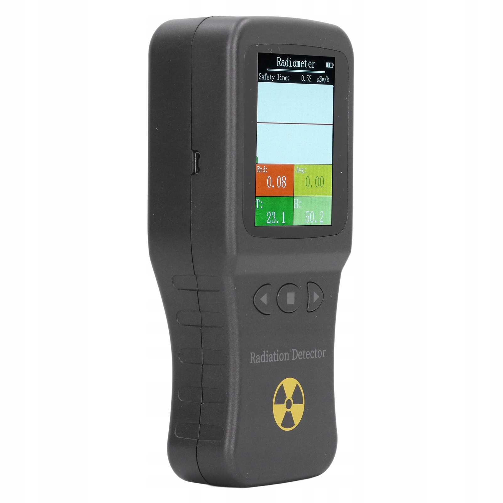 1. Тестирование 3 в 1: счетчик Гейгера, оснащенный широким диапазоном измерения радиоактивных веществ от 0,05 мксв до 50 мсв, также может определять температуру и влажность.