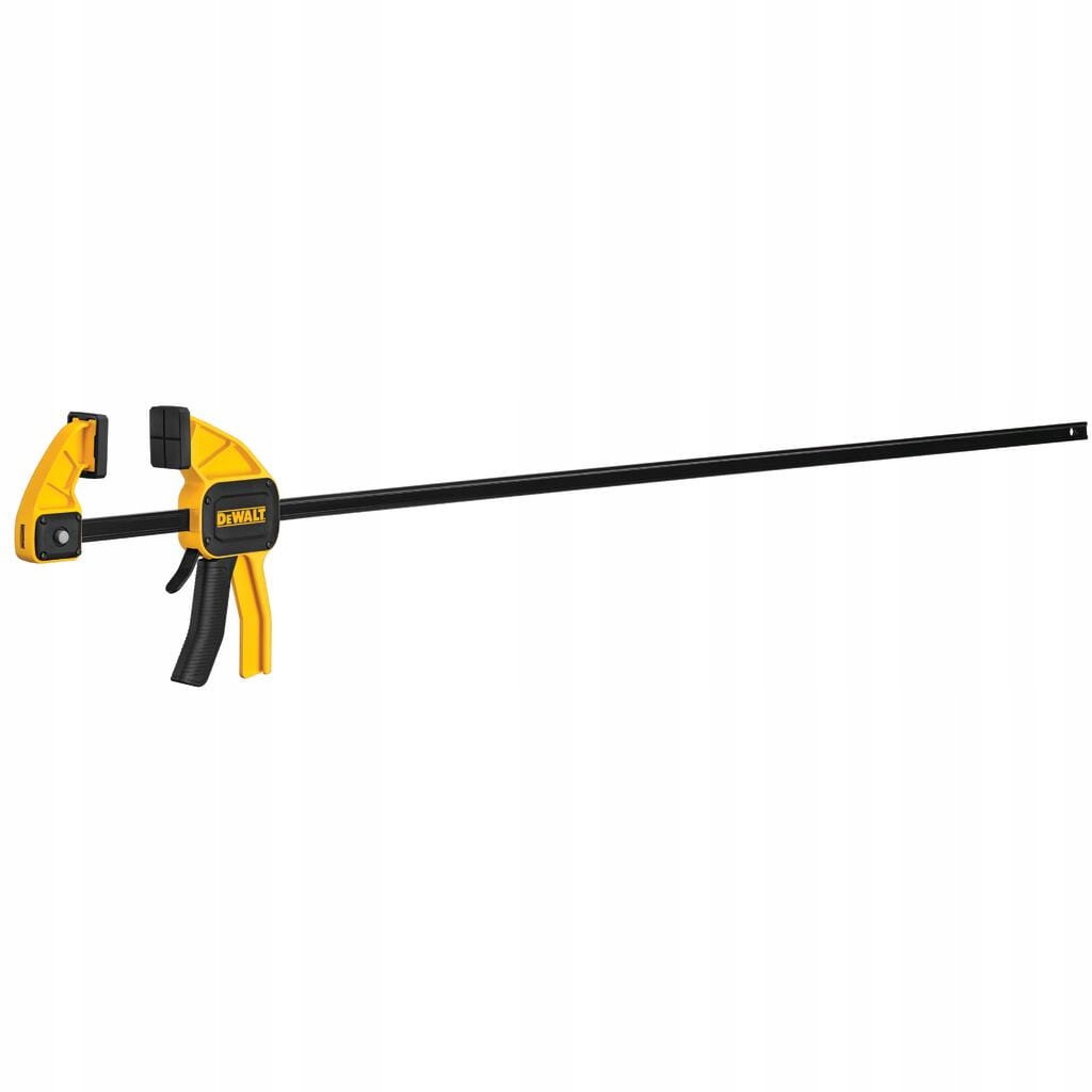 Большой автоматический зажим DEWALT® 900 мм — универсальный и простой в использовании инструмент. Усиленный нейлоном корпус и стержень из закаленной стали прочны и долговечны. Благодаря усилию зажима 135 кг, ширине захвата 82 мм, кнопке быстрой замены для легкой трансформации в разбрасыватель и съемным губкам, помогающим уменьшить окрашивание материала, этот зажим обязательно превзойдет ожидания профессиональных строительных подрядчиков.