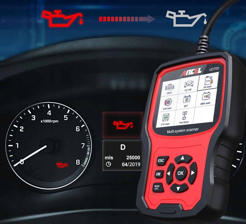obd2 vd700 может выполнить базовую настройку, адаптация и авторизацию доступа к транспортным средствам VAG (при необходимости). Такие как: адаптация положения дроссельной заслонки, сброс тормозных блоков, сброс TPMS, обучение угла поворота, сброс масла, кодирование инжектора, сброс DPF и регистрация батареи и т. Д. > ● Регенерация dpf