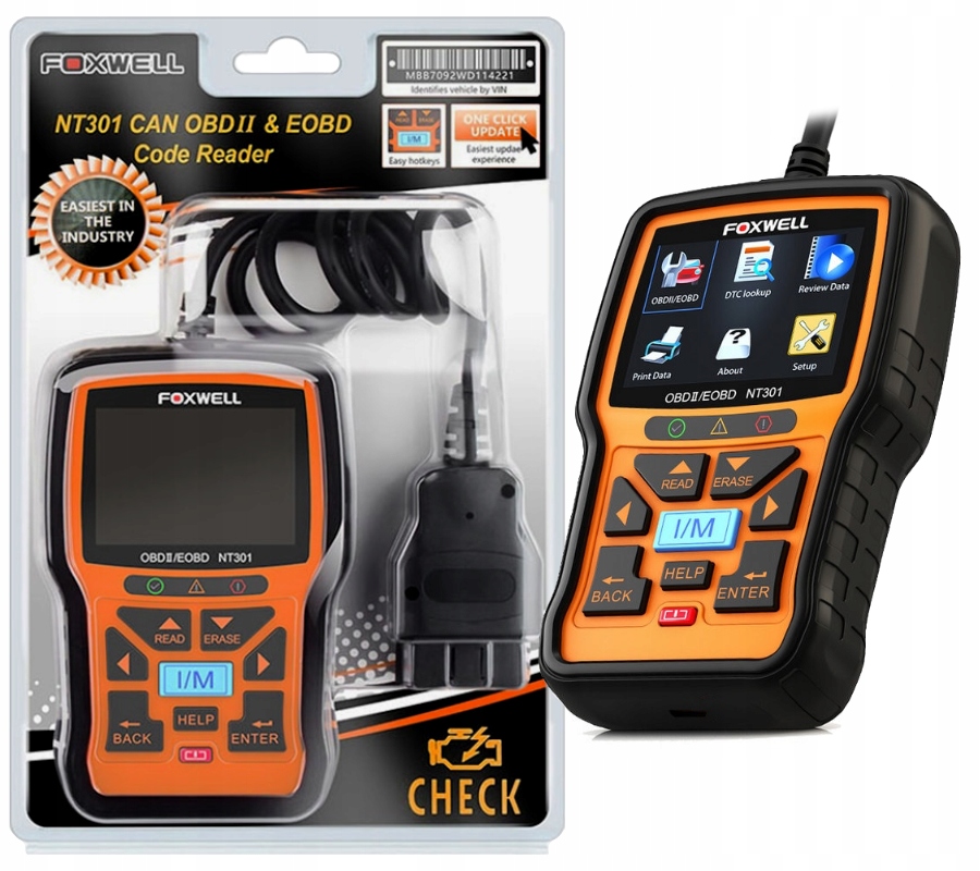 Foxwell NT301 CAN OBDII / EOBD читатель является самым простым и быстрым решением в случае разломов OBD. Когда дело доходит до диагностики проблем с контрольным двигателем, вы никогда не ошибетесь с новым чтением кода NT301. Он предлагает такую полезную информацию для профессионалов и опытных людей DIY, что они могут быстро и эффективно решать проблемы OBD2 / EOBD в современных транспортных средствах. Кроме того, это цвет TFT с диагональю 2,8 -дюймовой диагональю и аббревиатурой для аббревиатуры I / M, а чтение / удаление кодов DTC делает его отличным ценным центром