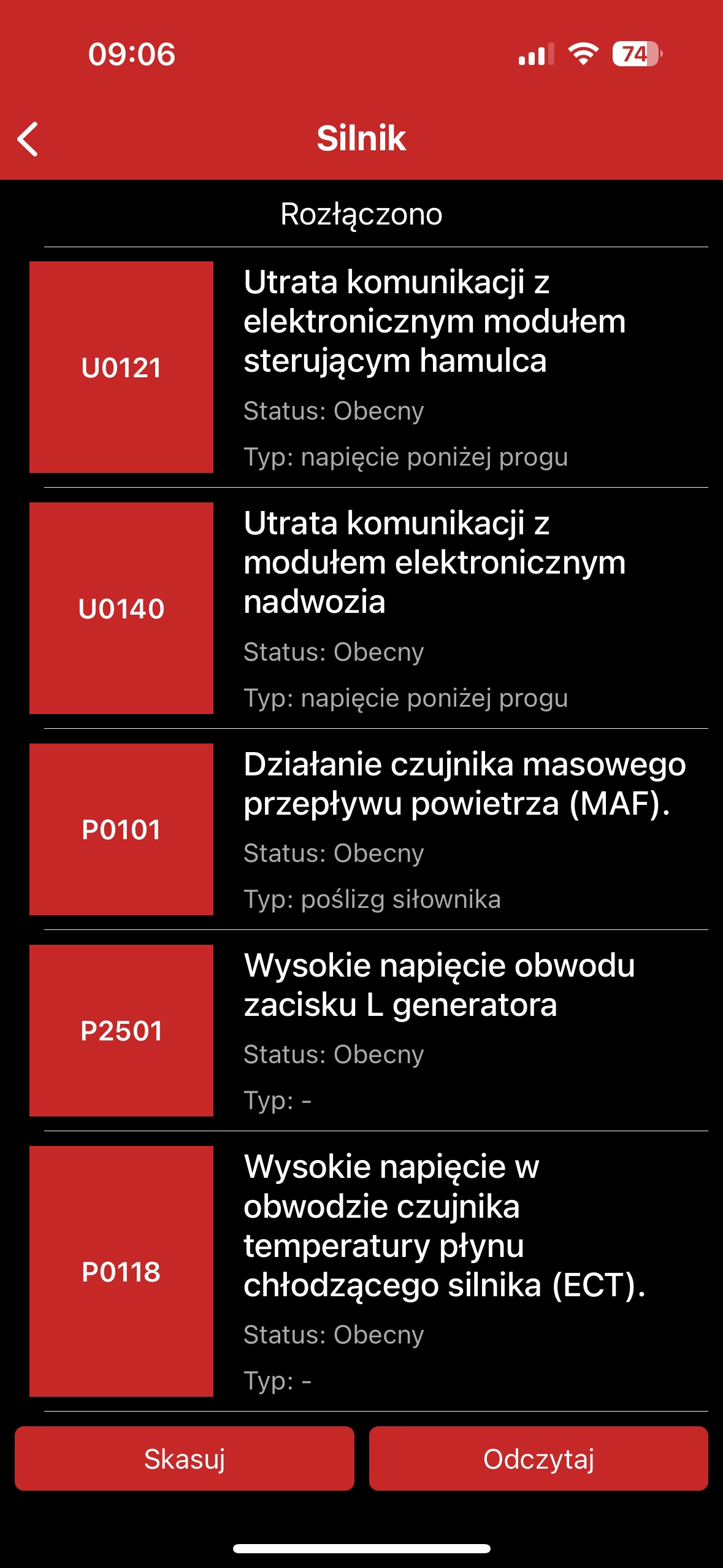 ✅Чтение кодов ошибок: сохранено , ожидающий, постоянный, общий и специфичный для данного производителя.