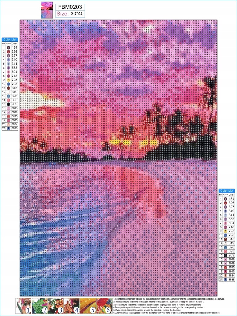 - Инструкция с указателем алмазов и схемой наклеивания.