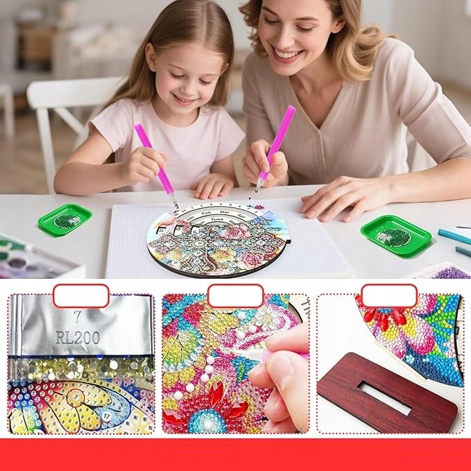 Красочный, креативный и яркий! Этот уникальный календарь для оклейки бриллиантами позволяет создать впечатляющую мандалу или крестик, используя блестящие алмазные росписи. Это прекрасная форма творческой игры, которая развивает терпение, концентрацию и навыки ручного труда. Она идеально подходит как детям, так и взрослым, любящим рукоделие.