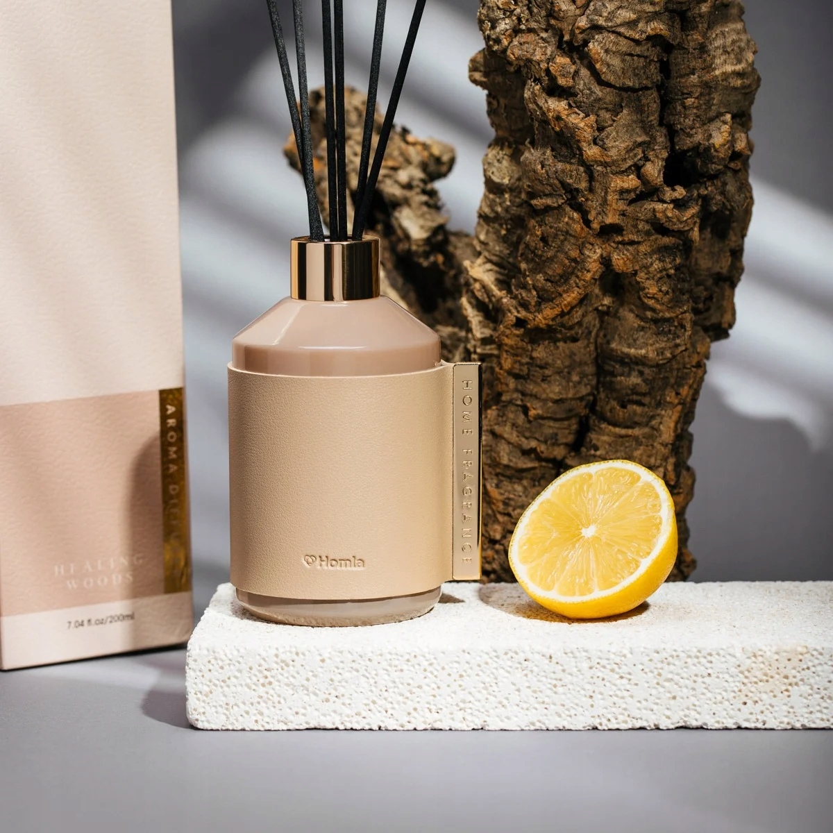 Введите успокаивающий лесной запах с гладким кожаным диффузором. Элегантная бутылка в оттенках бежевого и благородного розового будет не только практическим дополнением, но и стильным внутренним украшением. Его уникальный аромат напоминает воспоминания о прогулках в лесу, расслабляет и завершает дом теплом природы .