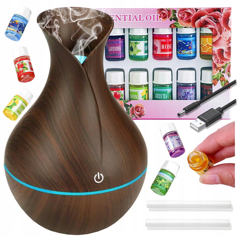 ДИФУЗОР ЗВОЛОЖУВАЧА ПОВІТРЯ + 12x ЕФІРНИХ МАСЕЛ БЕЗКОШТОВНО! АРОМАТЕРАПІЯ
